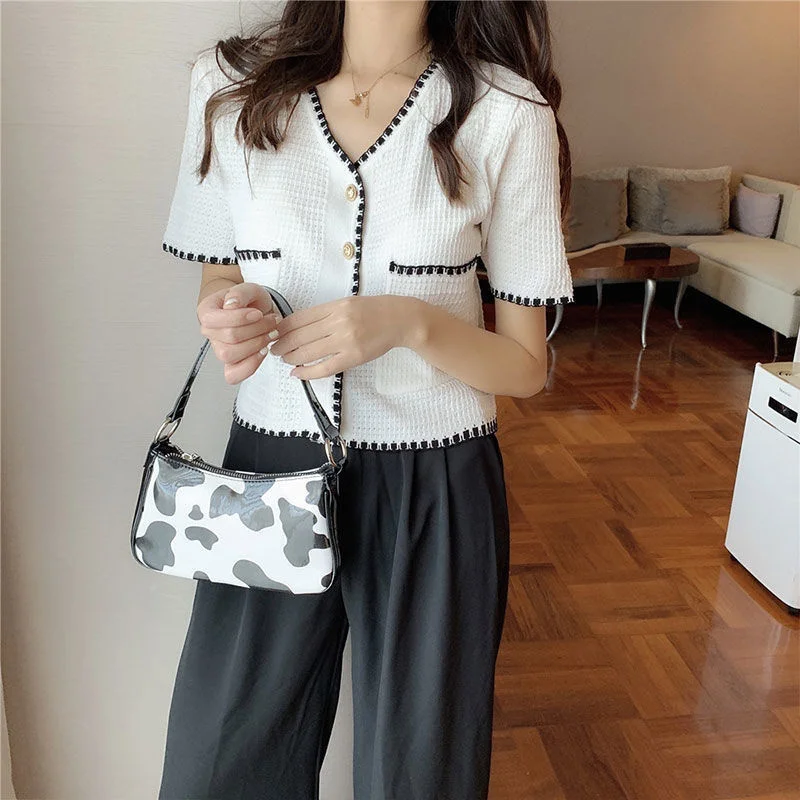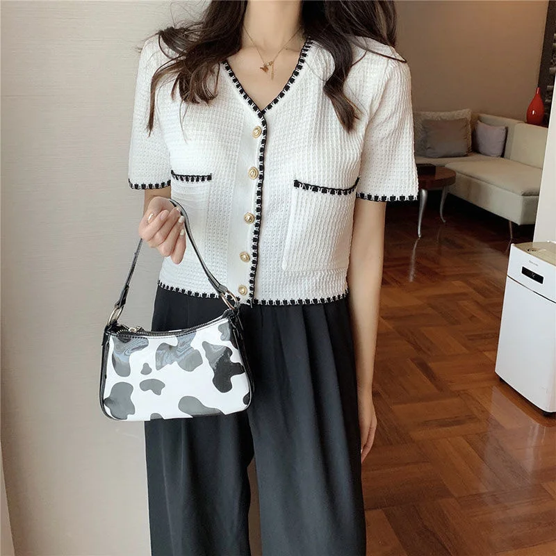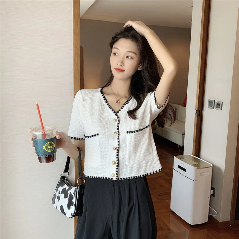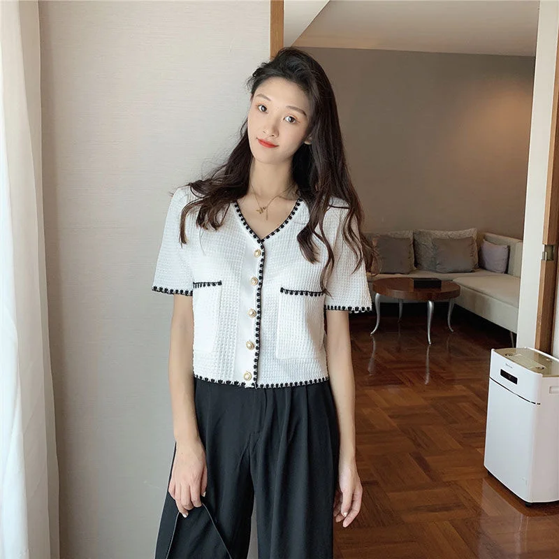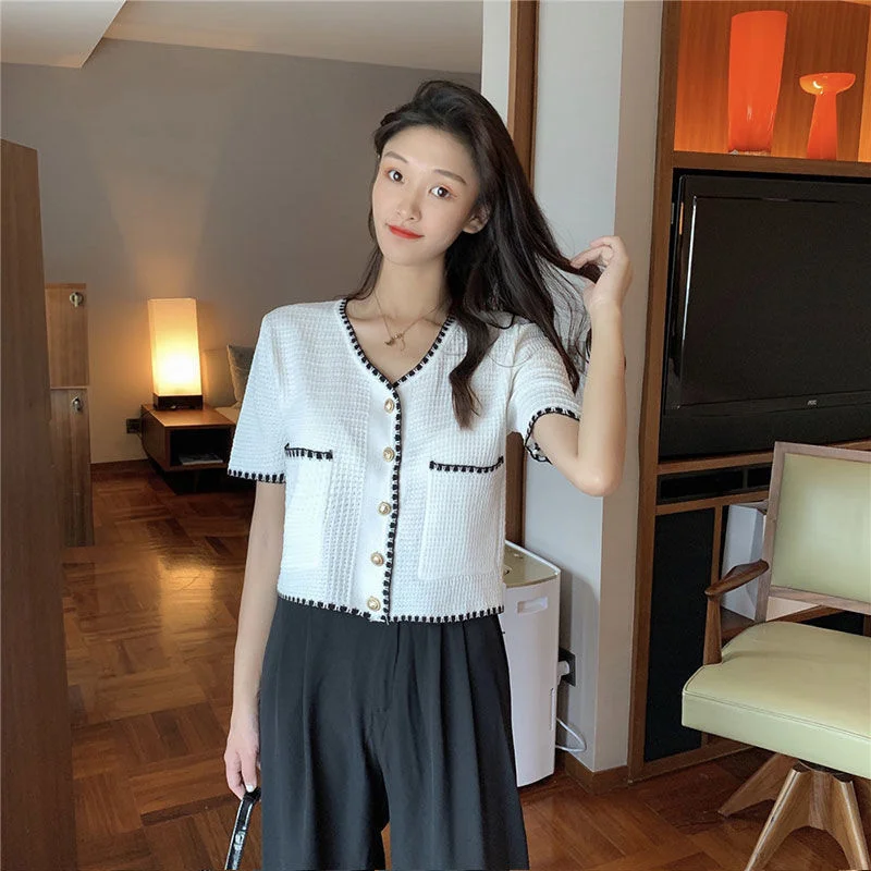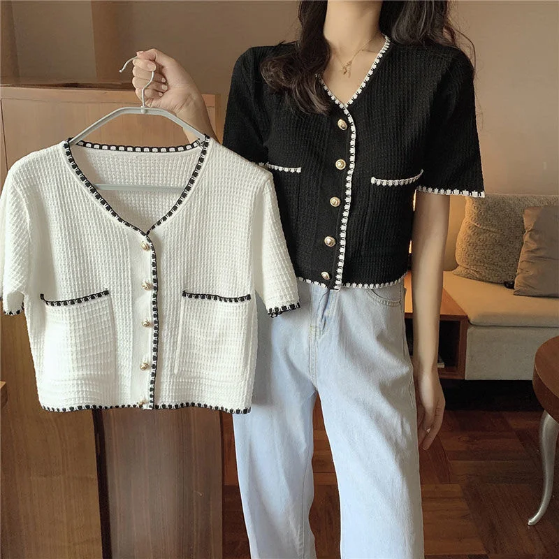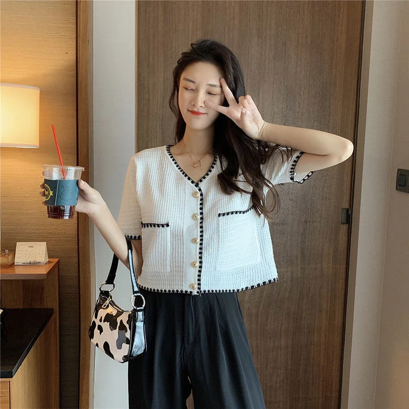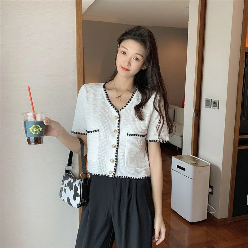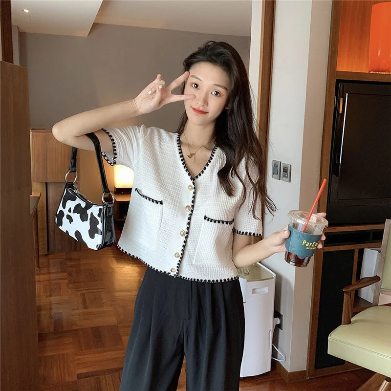Black Knitwear Short Sleeve Top Lady Cardigan Crop Top