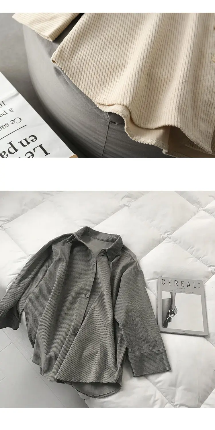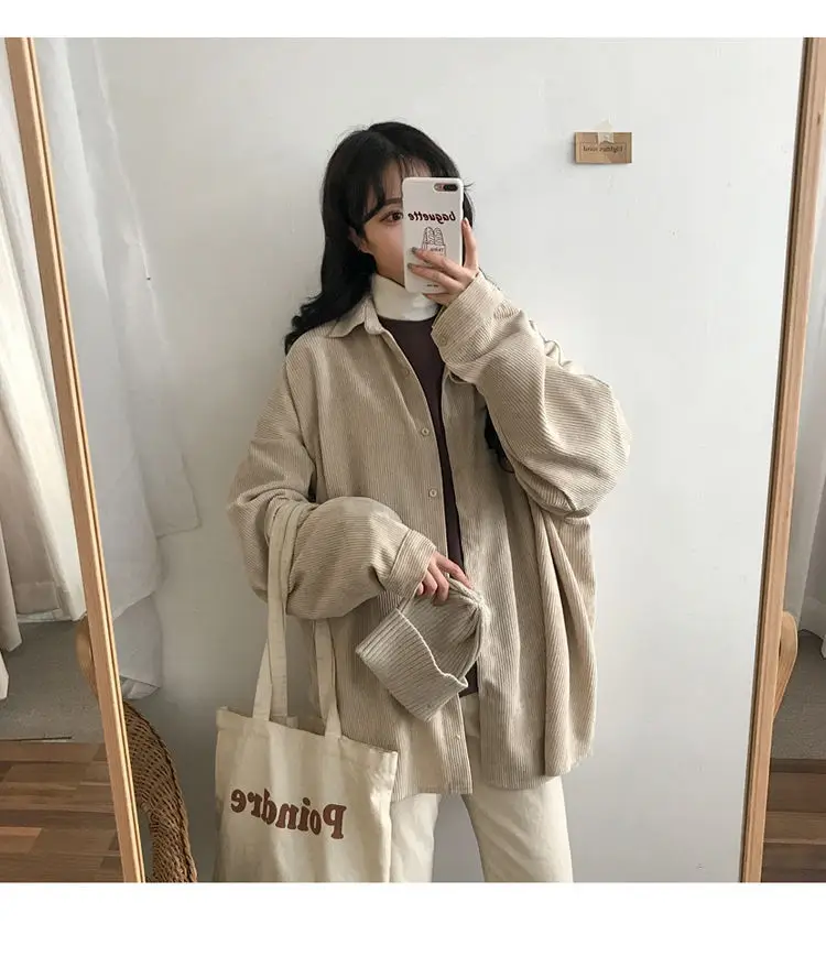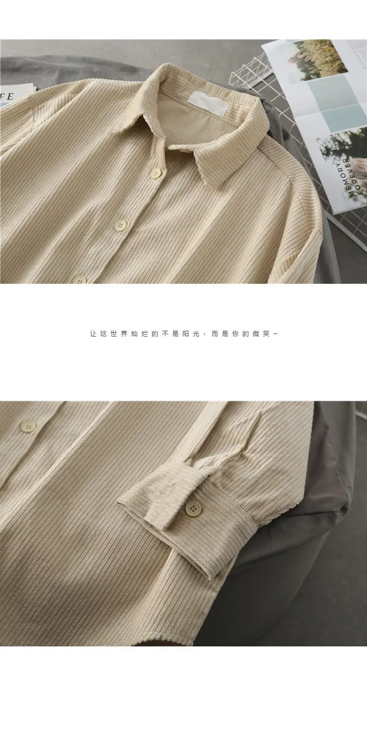 Sleeve Style:Regular灯芯绒外套长袖秋季日系ulzzang迷鬼马系少女慵懒2020宽松衬衫女