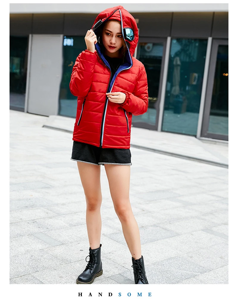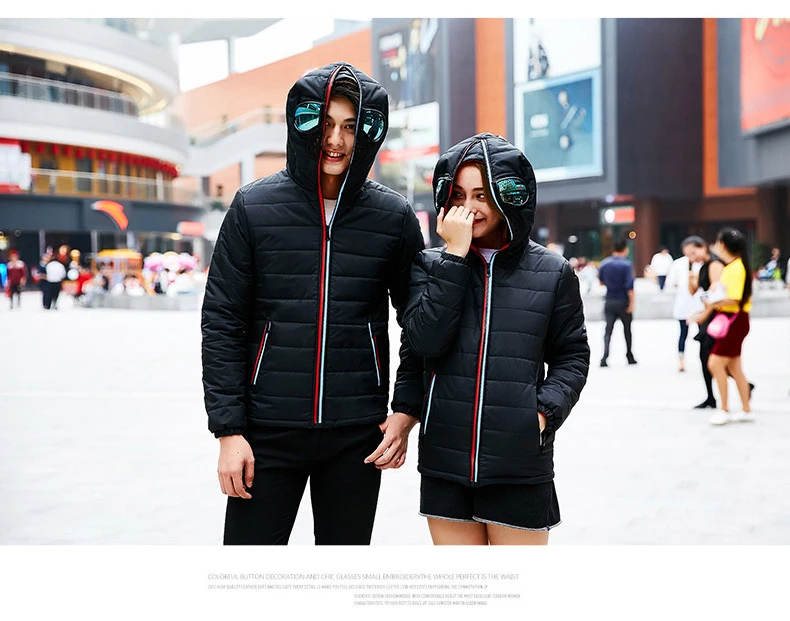 Cotton Hooded with Glasses Warm Jacket Parkas