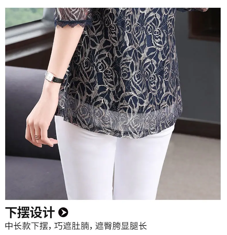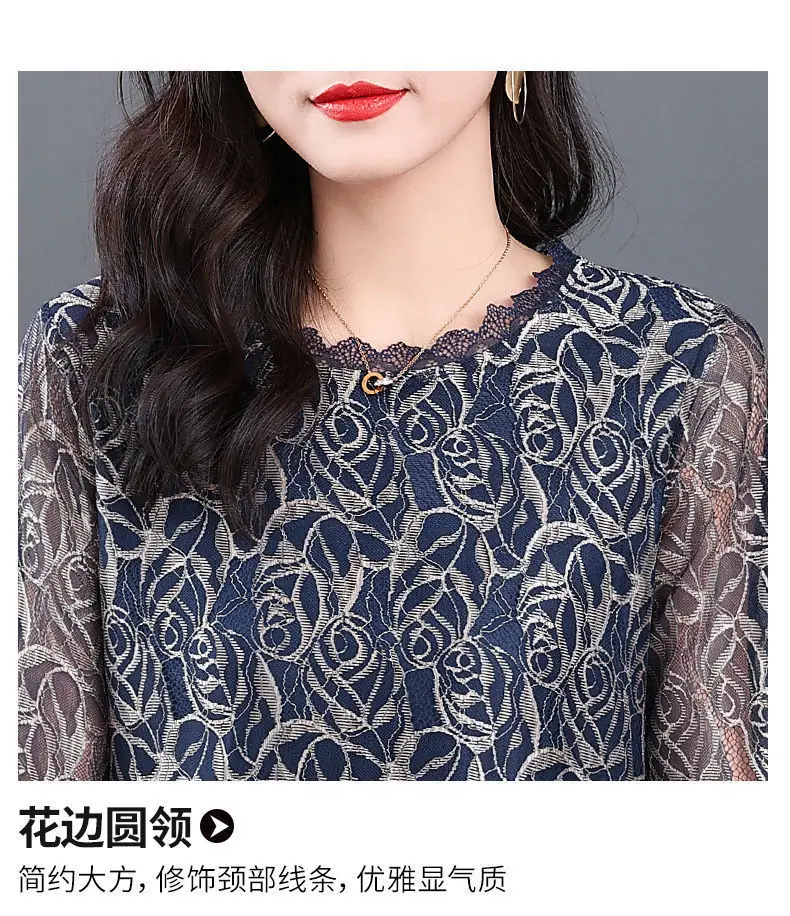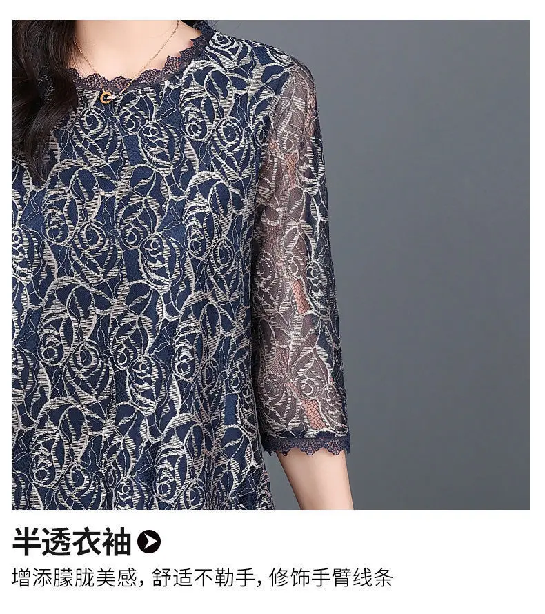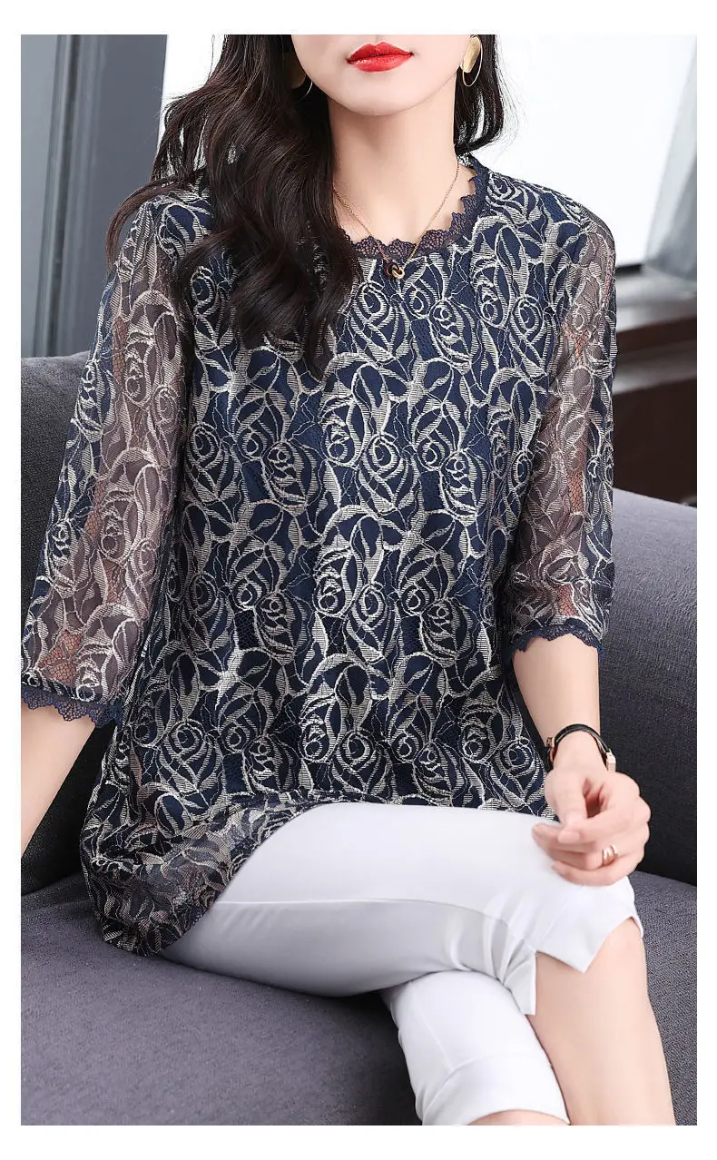 Elegant Printed Hollow Out Lace Gauze T-shirt S-Neck Loose Pullover Tops