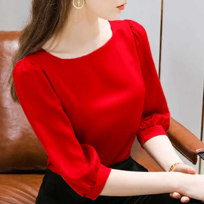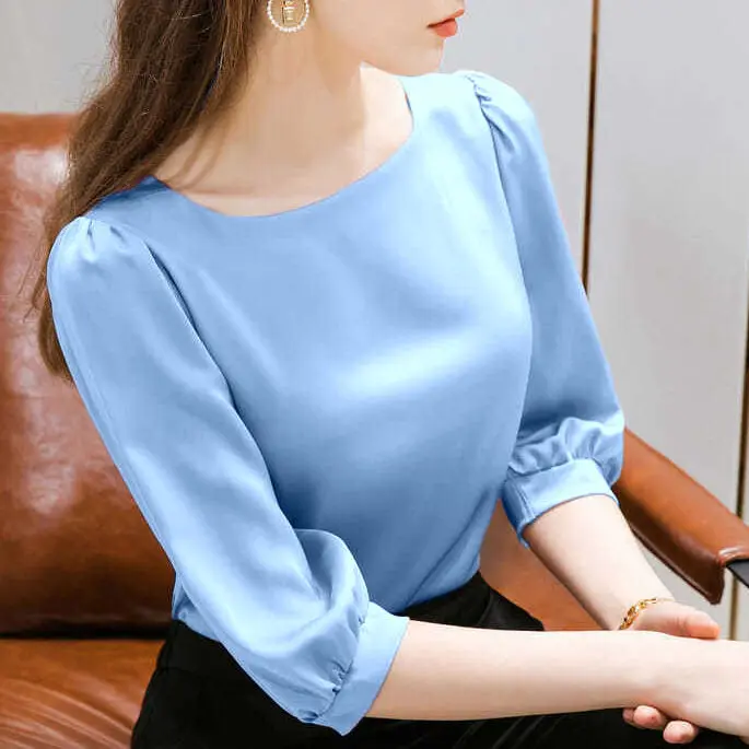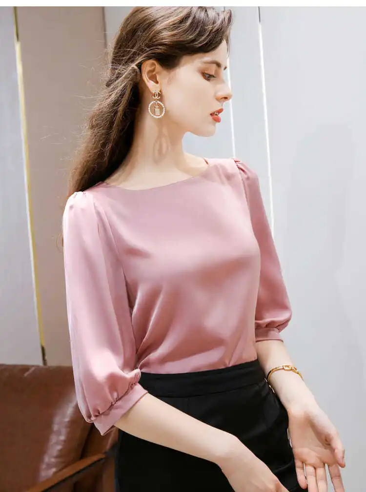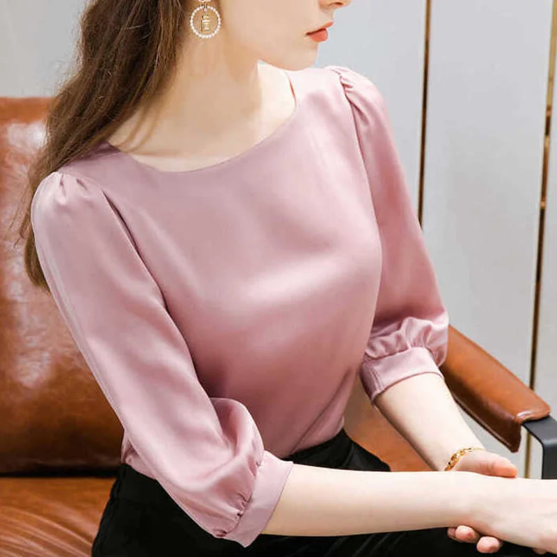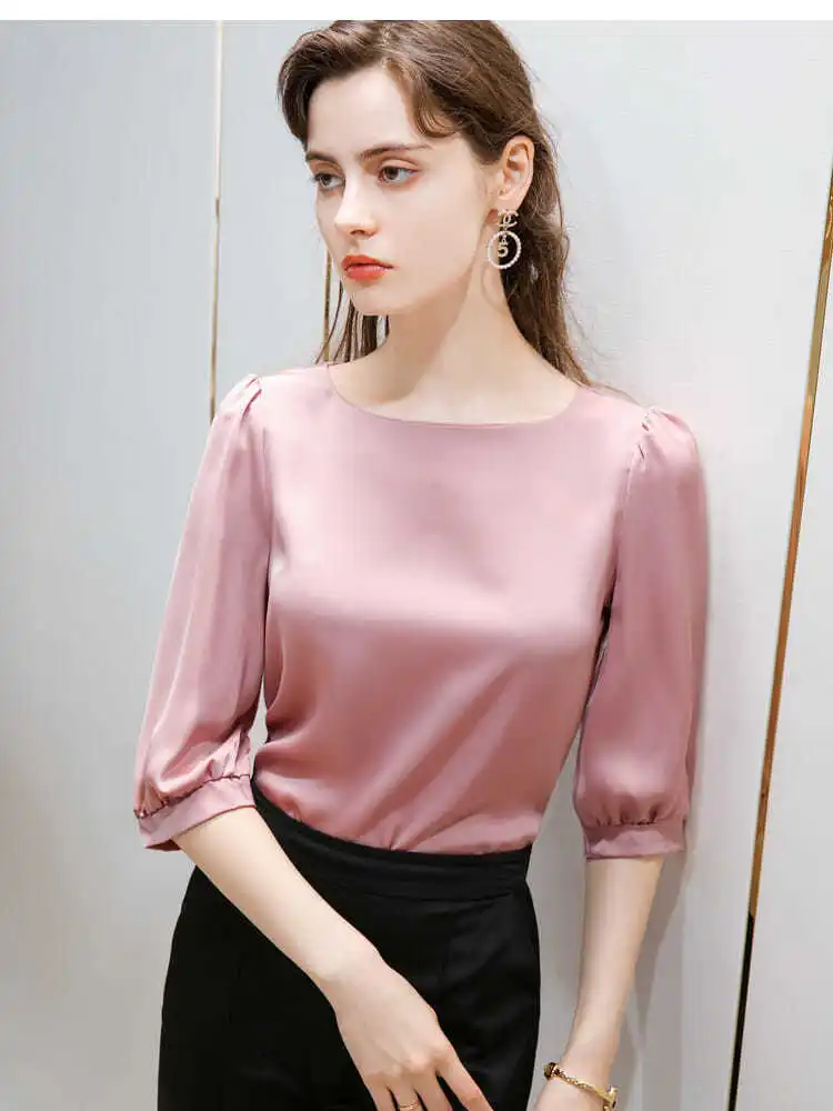 Elegant Square Collar Loose Shirt Oversized Half Sleeve Fashion Woman Blouses