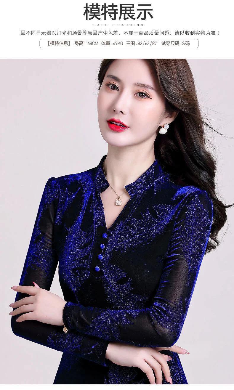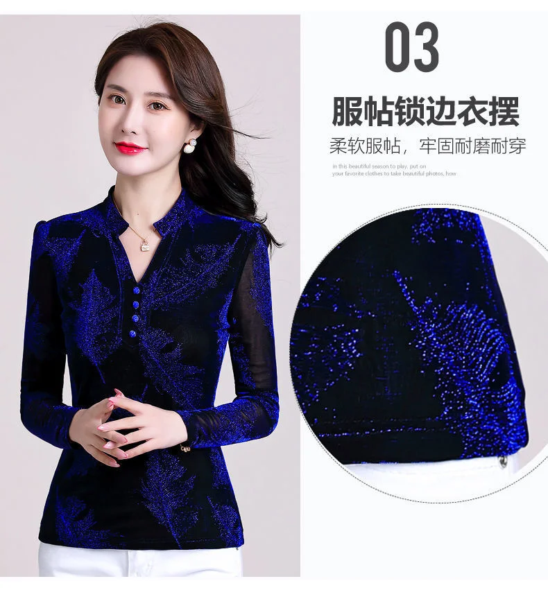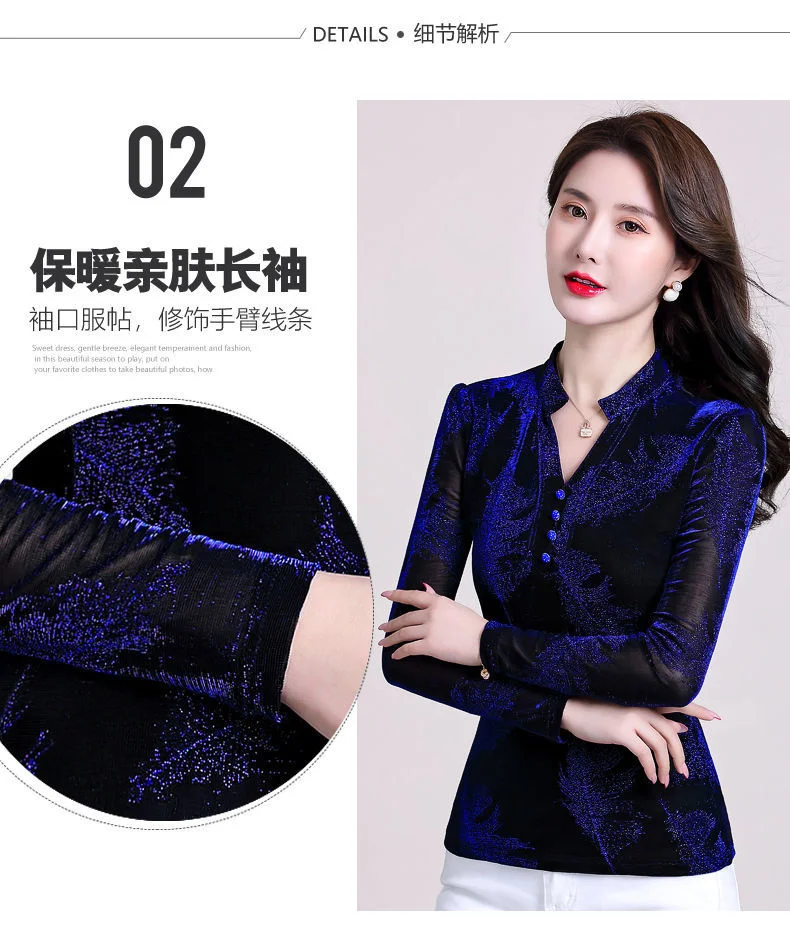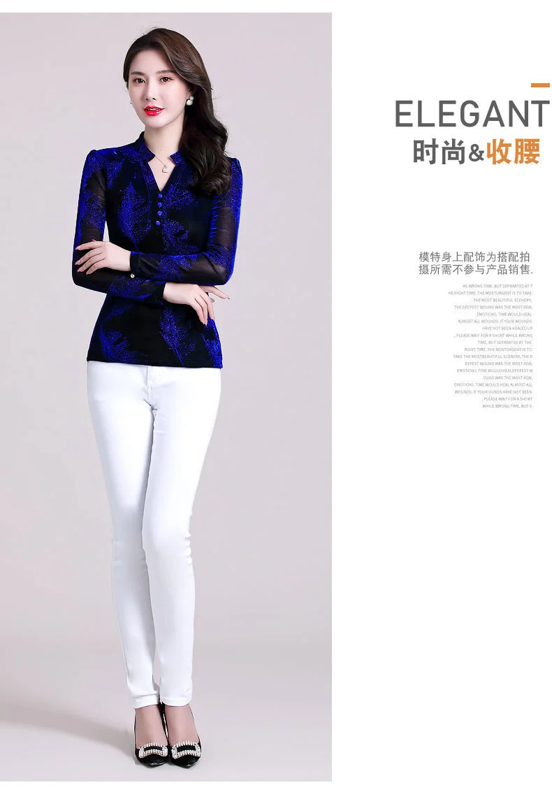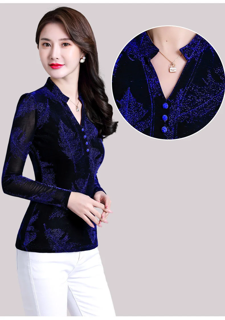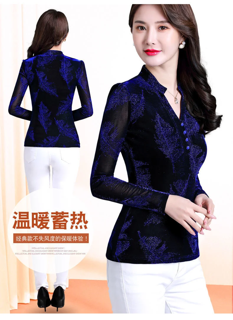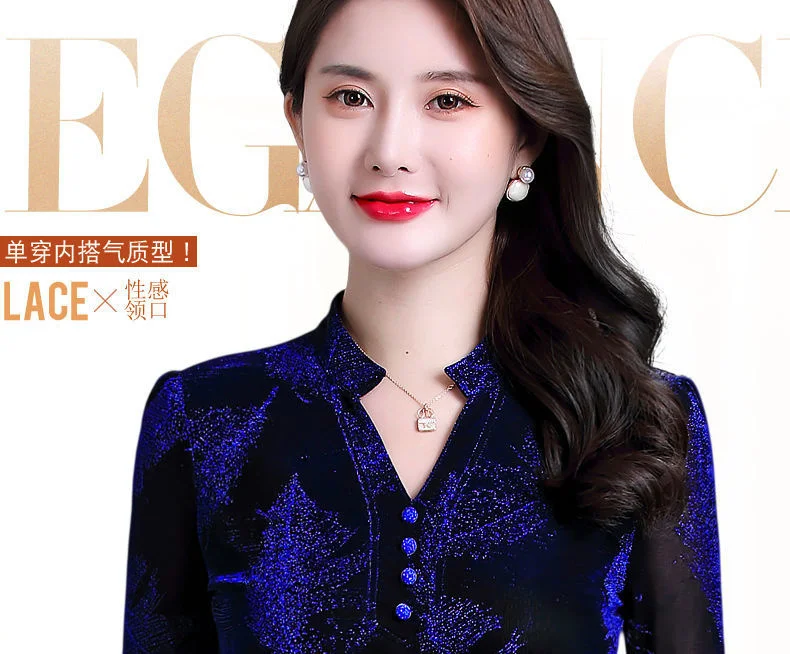 Elegant Warm Lace V-neck Long Sleeve Shirt