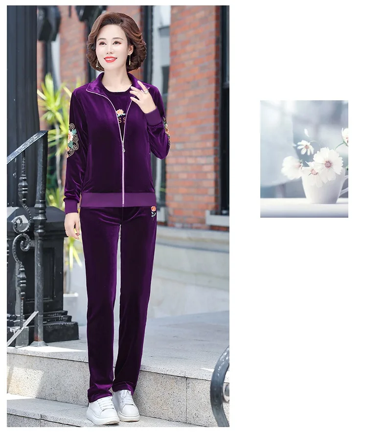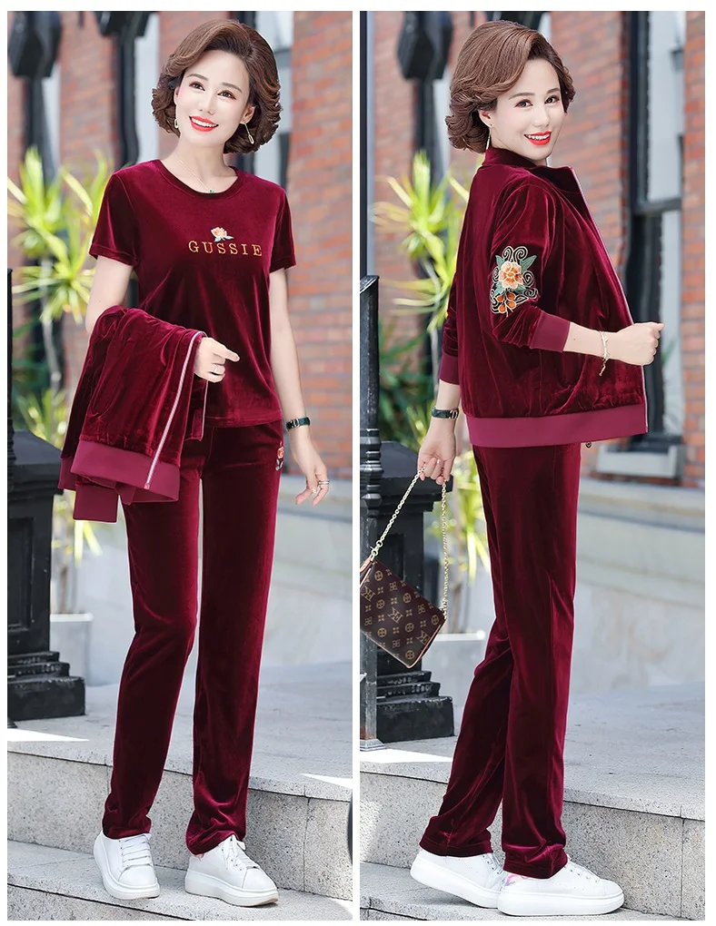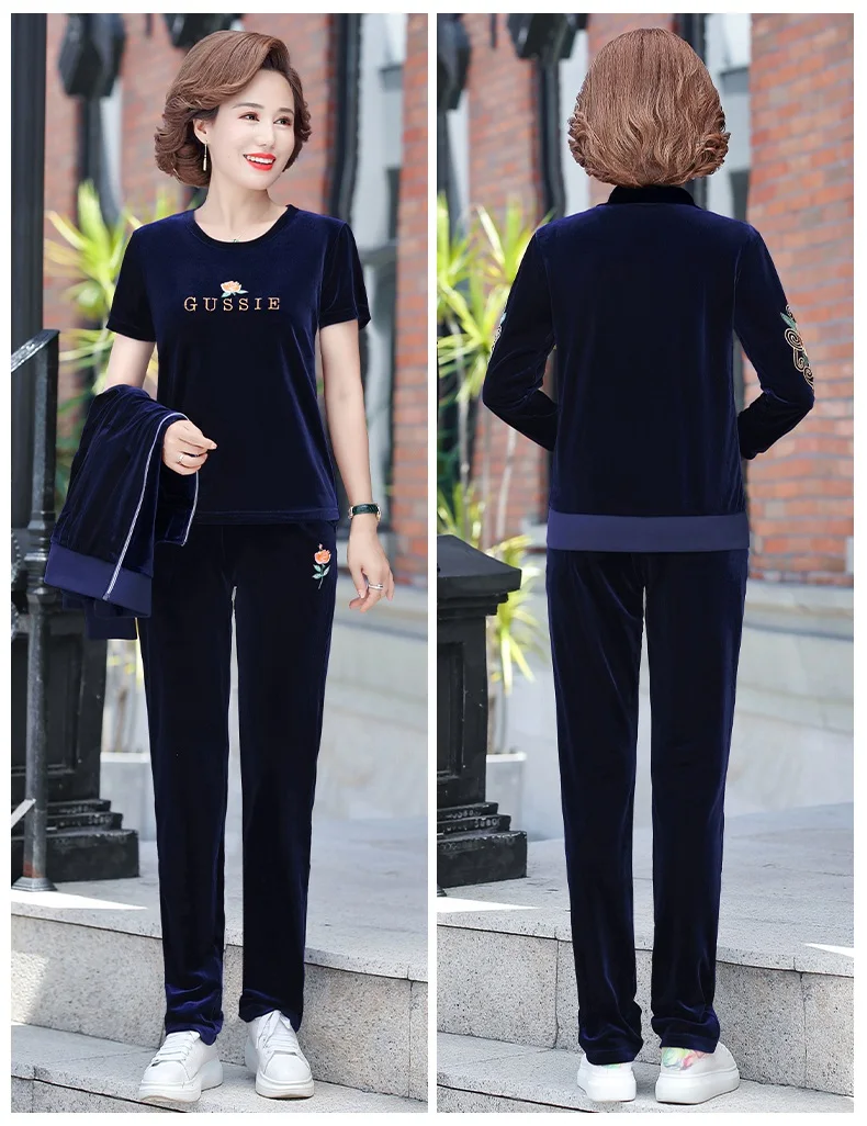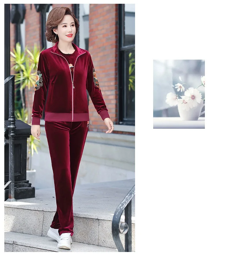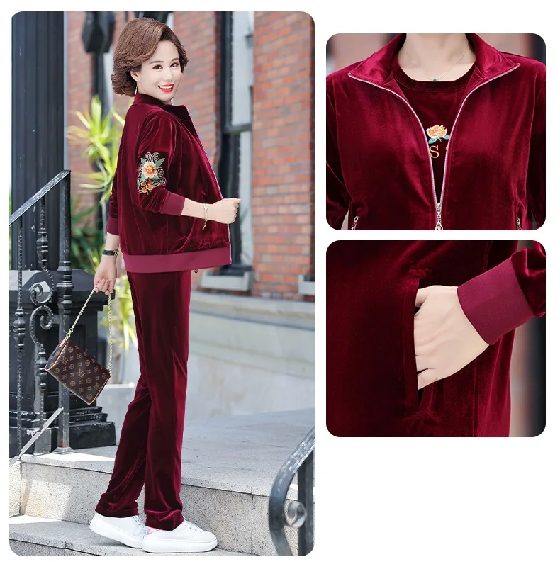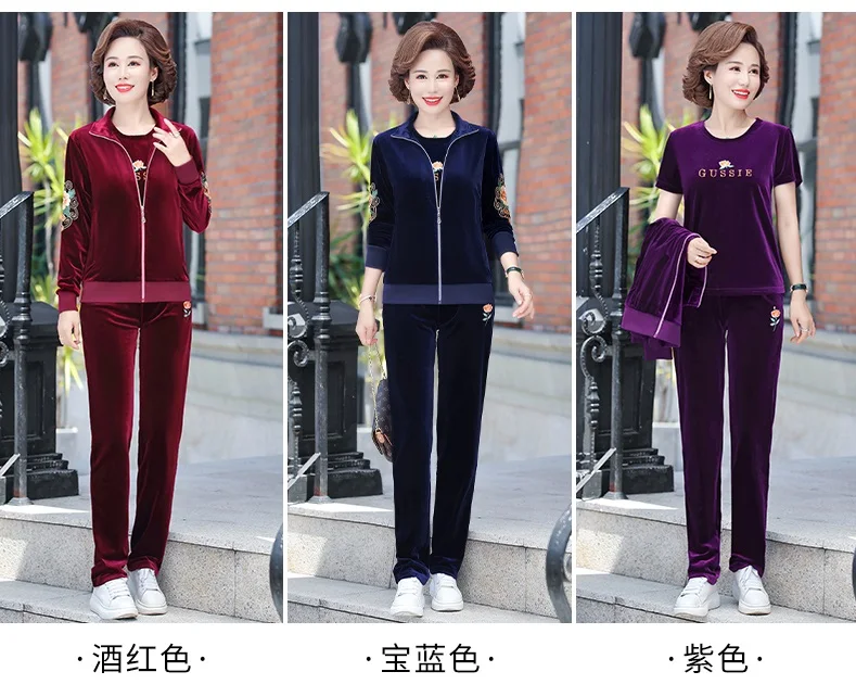 Gold Velvet Suit Spring Autumn Two-Piece Long-Sleeved Sports Suit