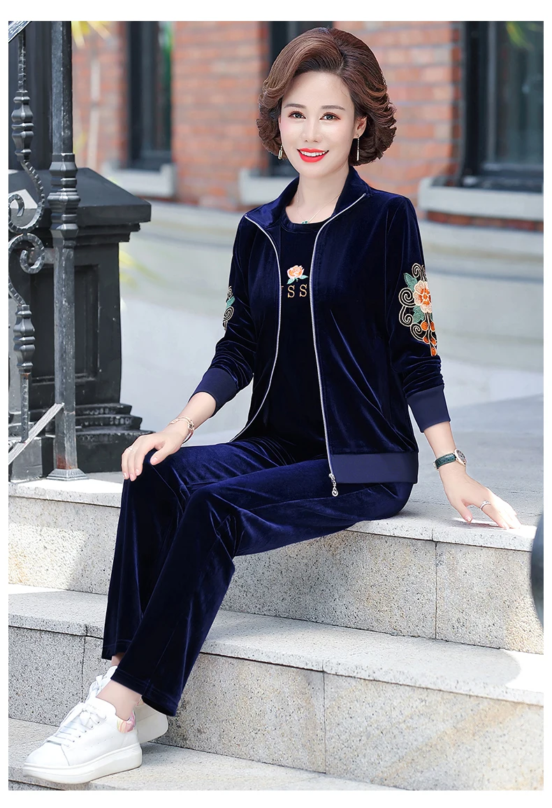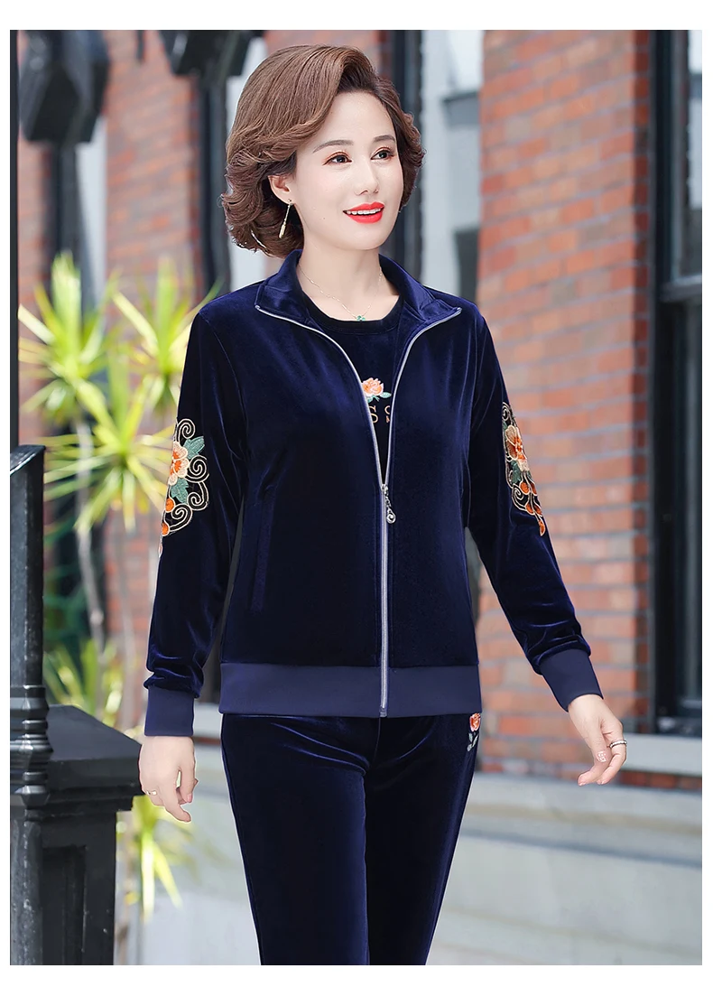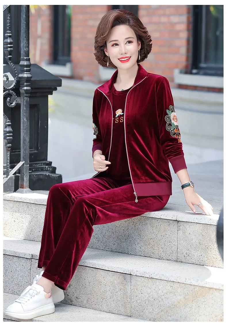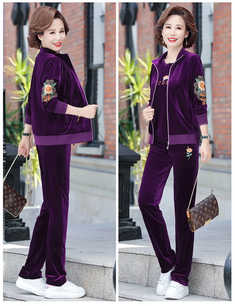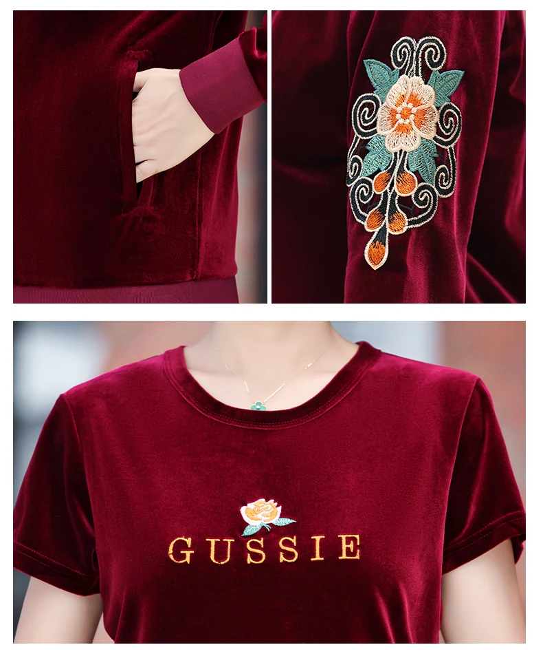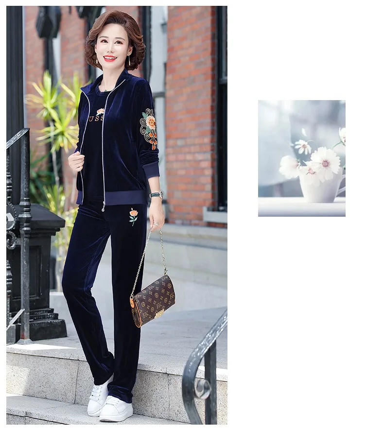 Gold Velvet Suit Spring Autumn Two-Piece Long-Sleeved Sports Suit