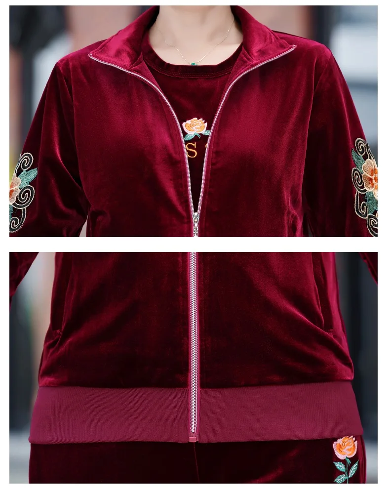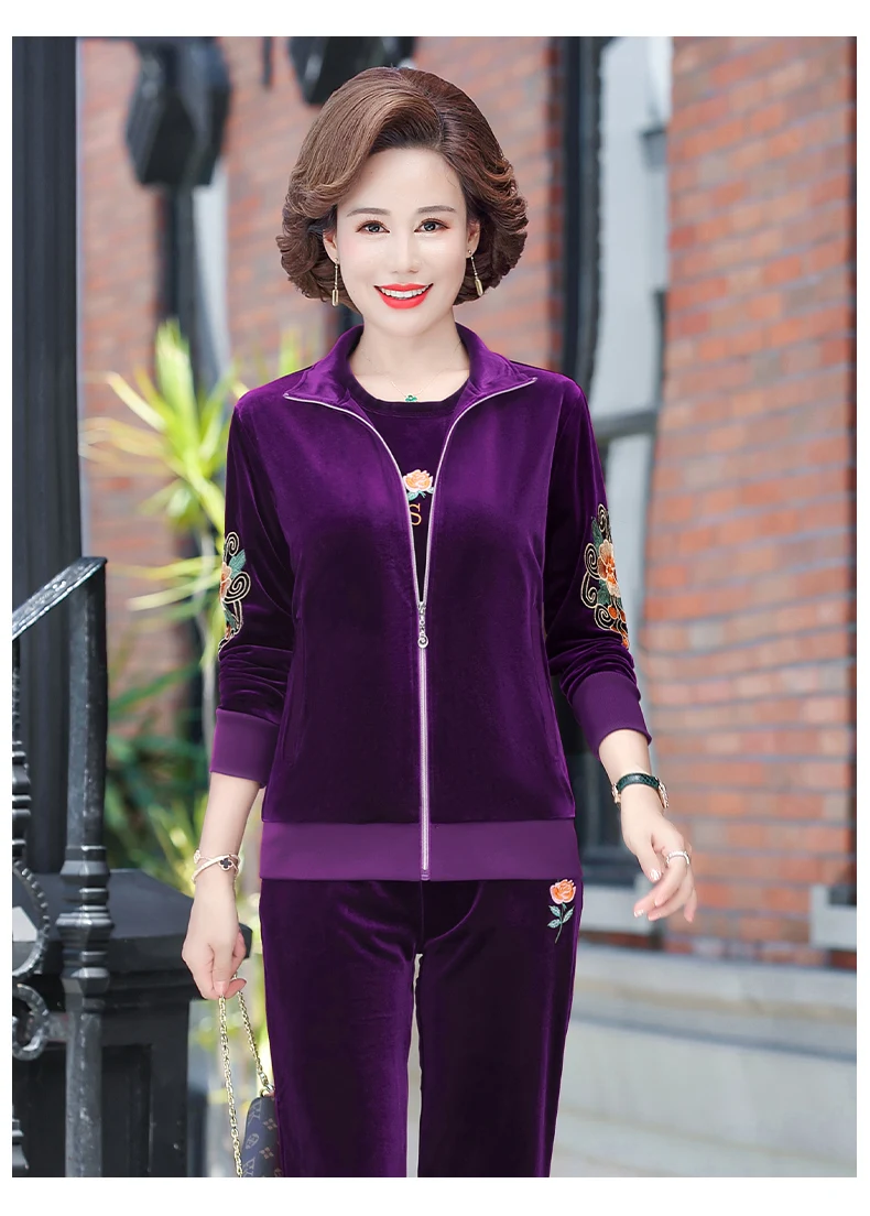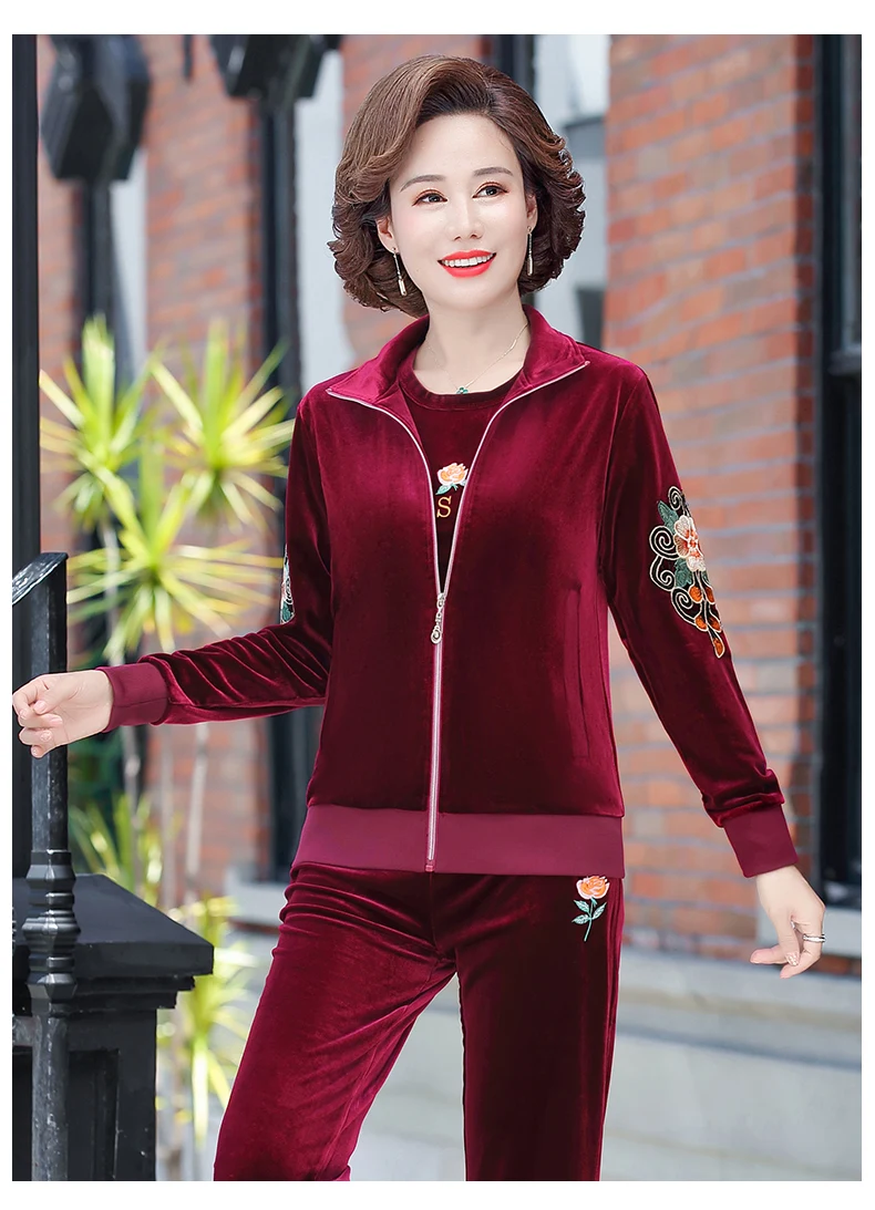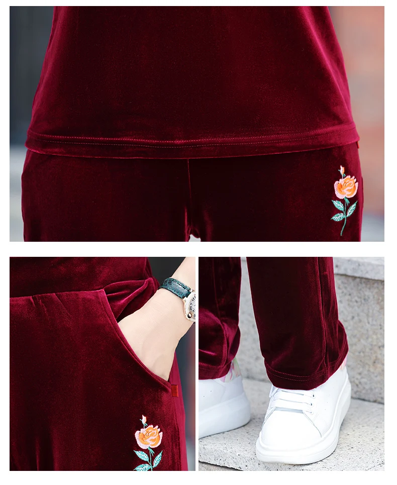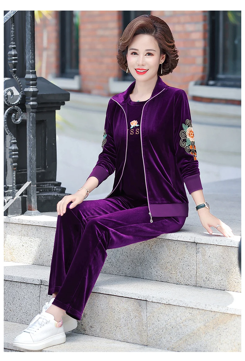 Gold Velvet Suit Spring Autumn Two-Piece Long-Sleeved Sports Suit