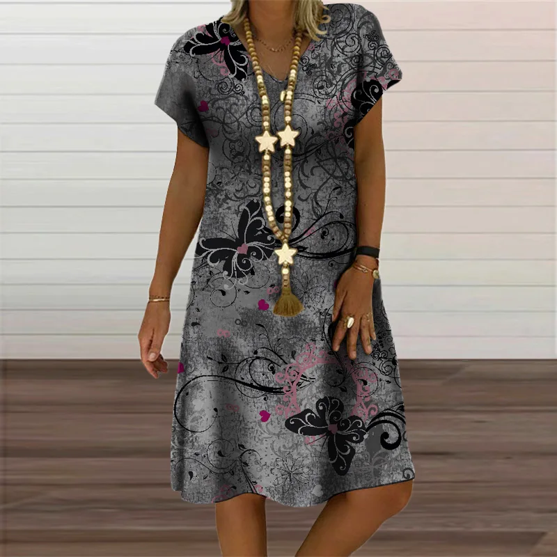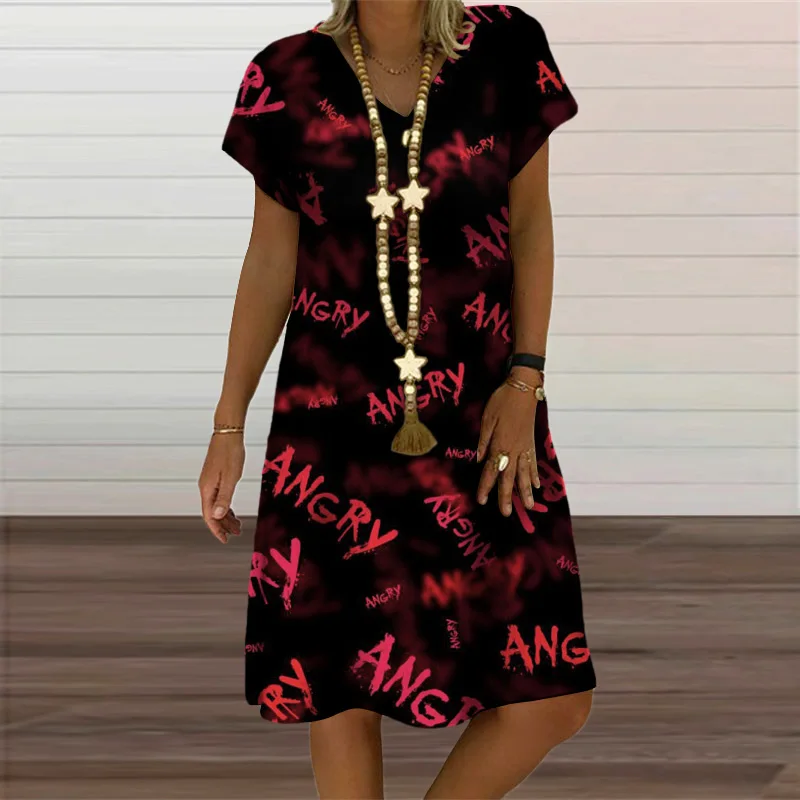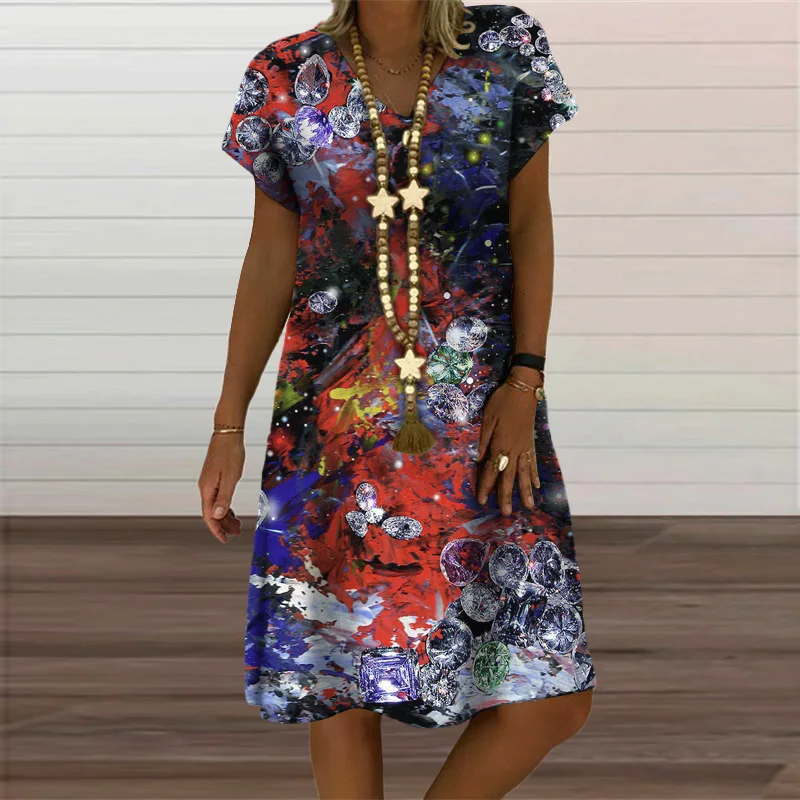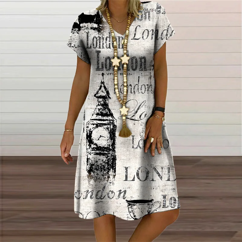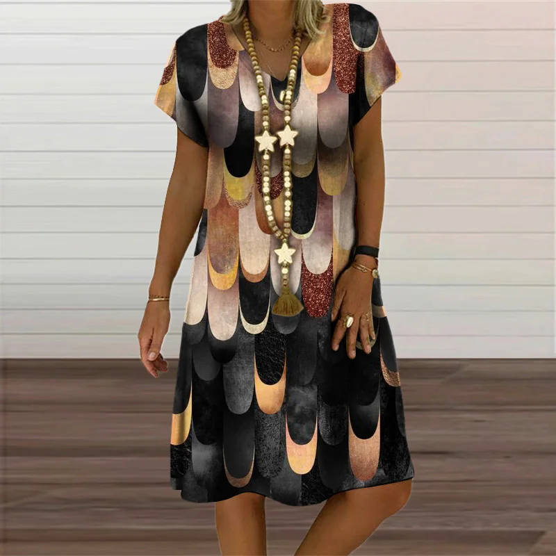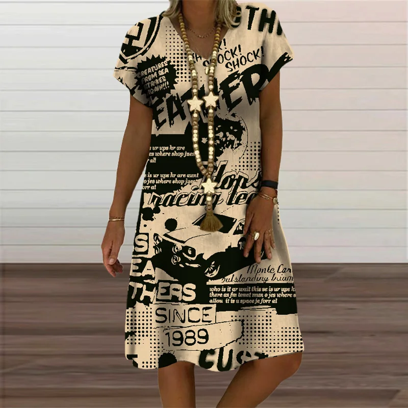 Plaid Geometric Graphic Mini Dresses Loose Short Sleeve V-Neck Beach Sundress