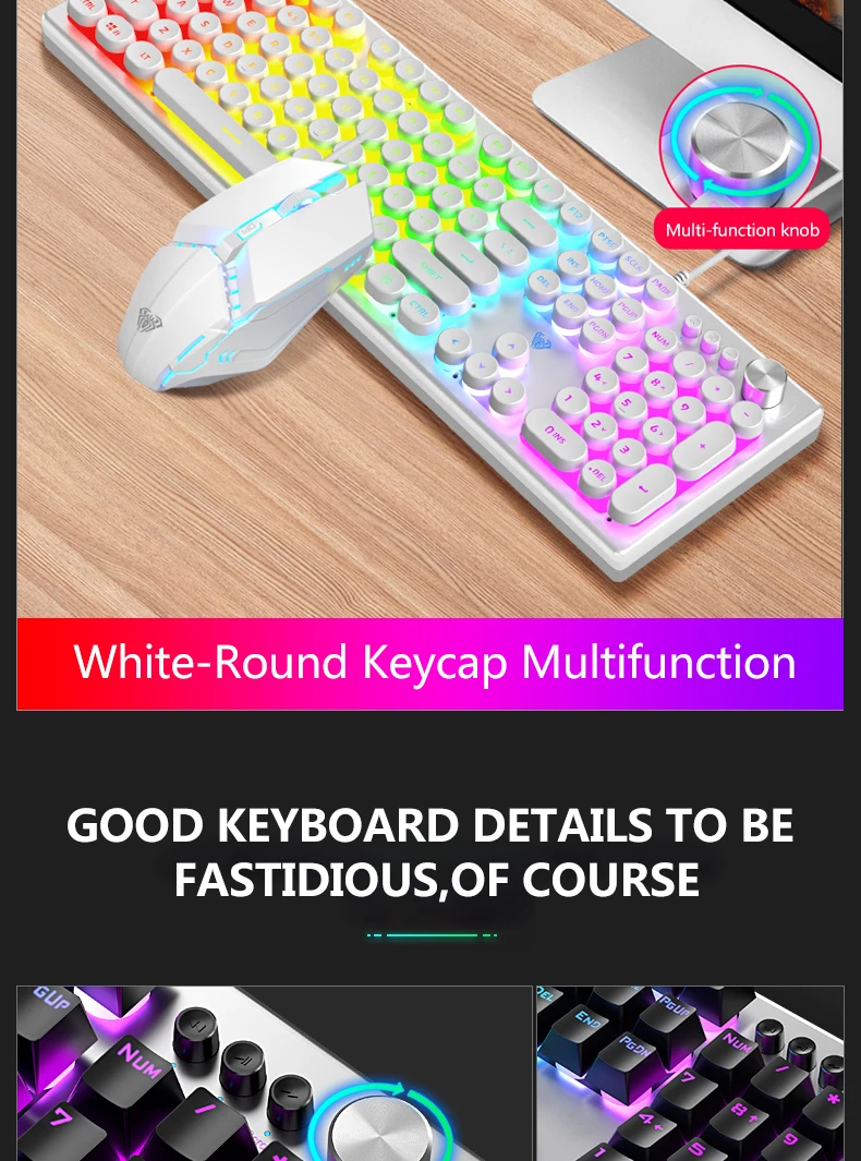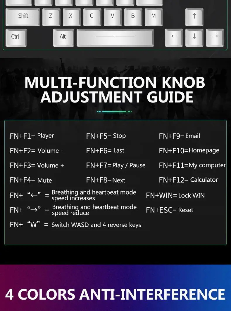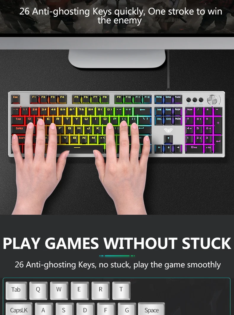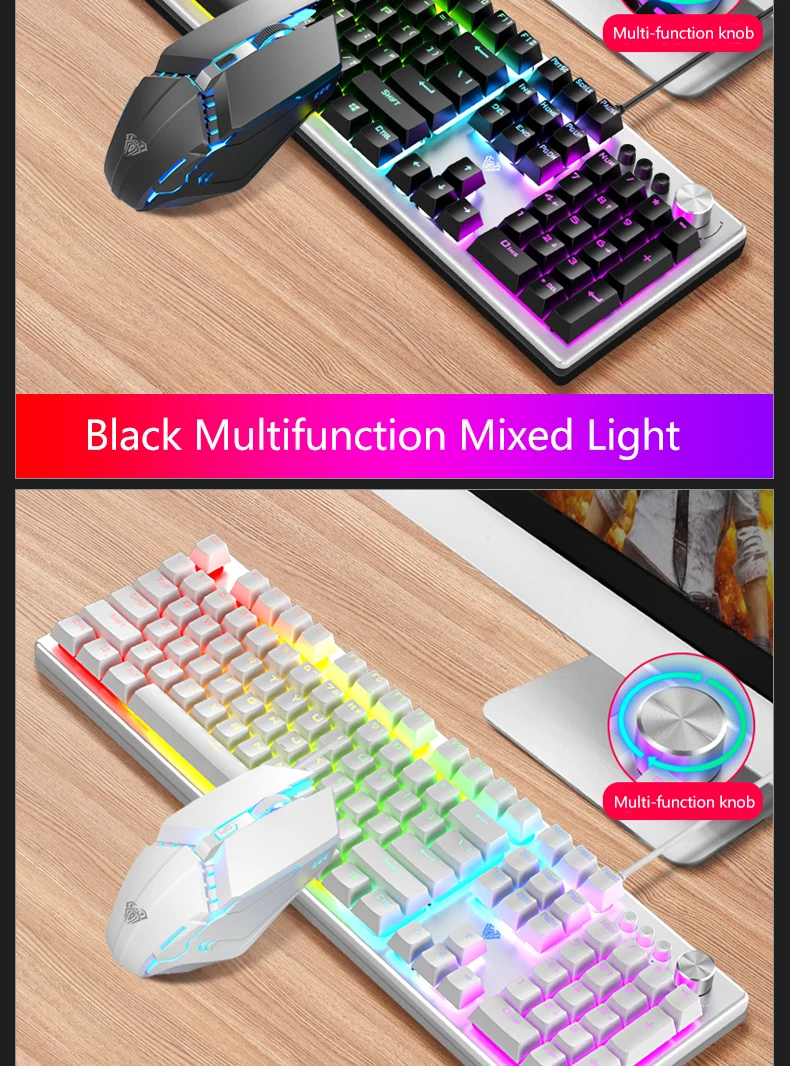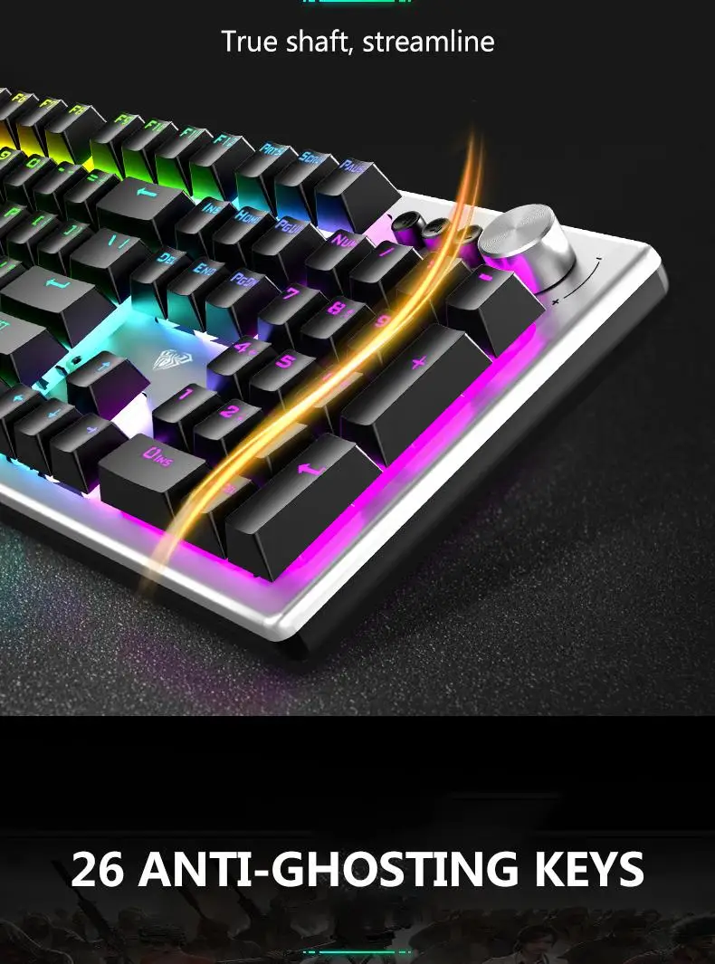 【Multi-function Alloy Knob】In game mode, you can change the lighting effect of the keyboard, and in multimedia mode, you can adjust the volume and switch songs