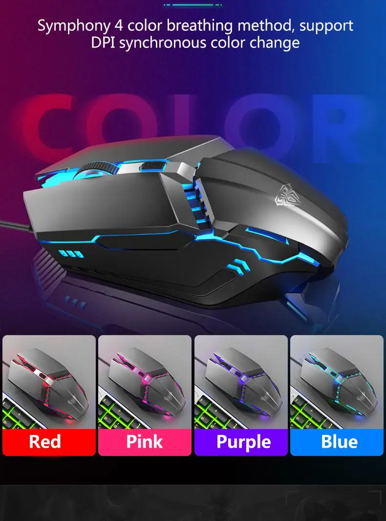 【Game chip】 4-color backlit mouse with side buttons makes your game more handy