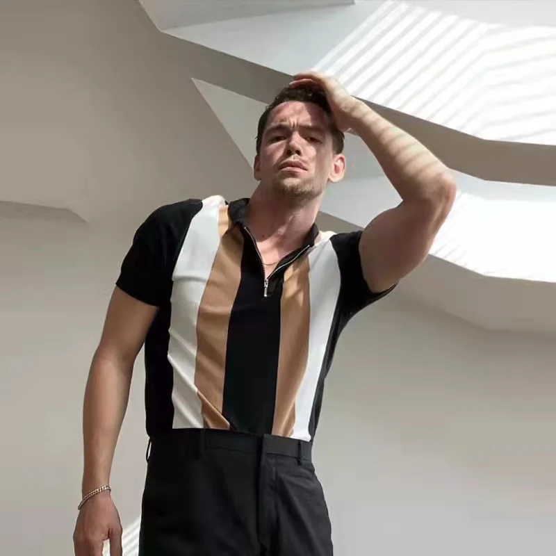 2022 Summer Plaid Men's Streetwear Fashion Patchwork Men Short Sleeve