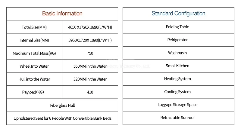 Size | 4650×1720×1890 MM or Customized | Weight | 750 KG or Customized |