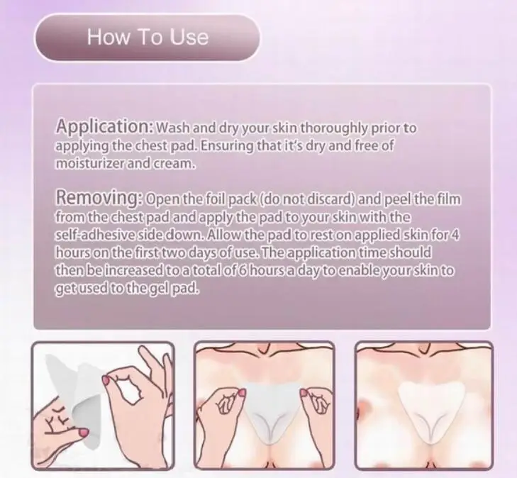 2. Place the silicone pad on the chest area for at least one hour a day or overnight.