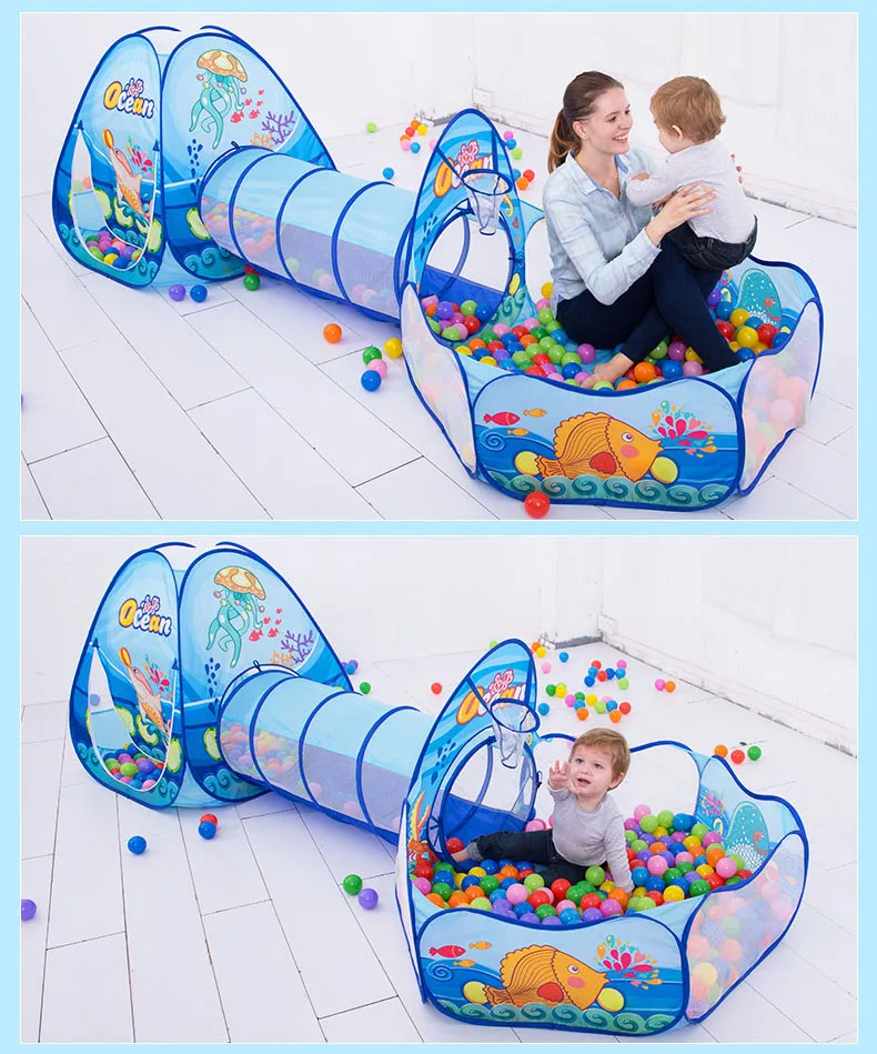 Package Contents: 1 x Tent Toy 1 x Tunnel 1 x ball pit 1 x Zippered Storage Bag