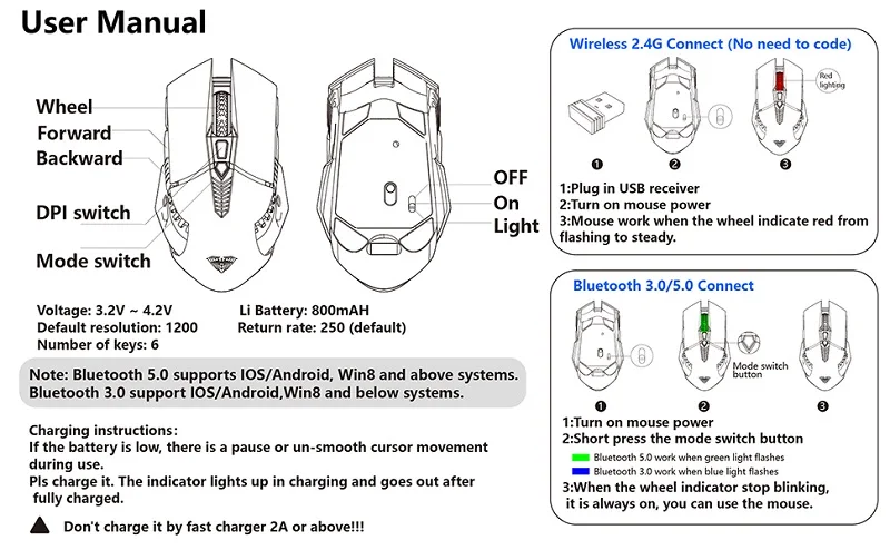 Features 11:Bluetooth Wireless Gaming Mouse
