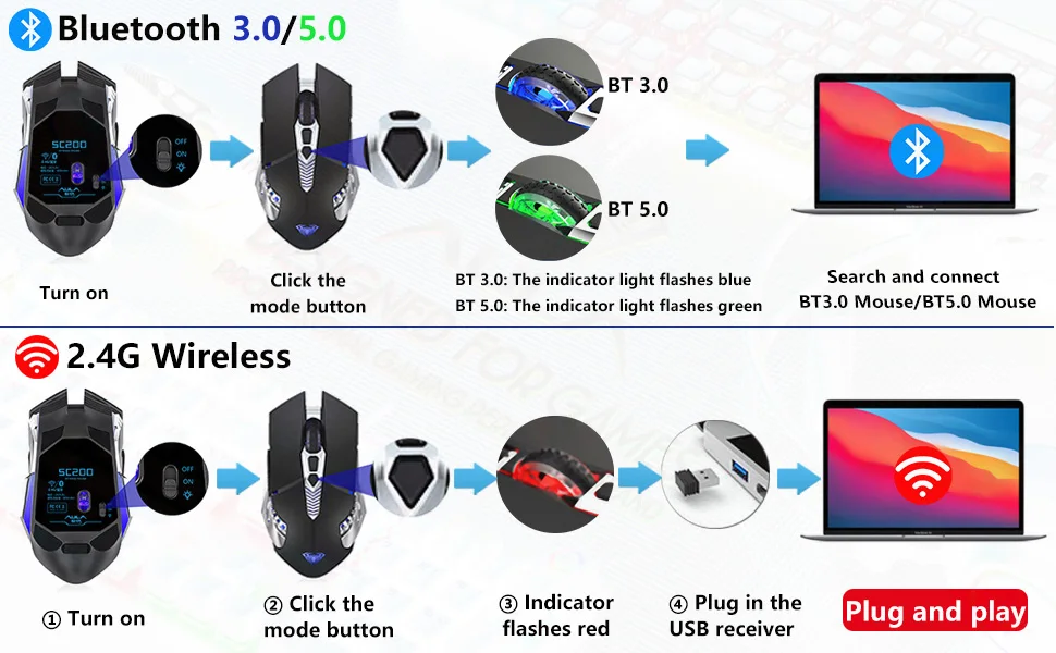 Wireless type:Bluetooth 5.0, Bluetooth 3.0, 2.4G wireless