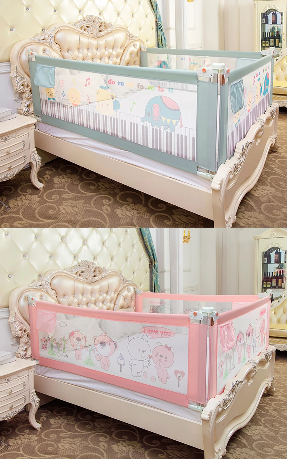 Our bed guardrail has 3 colors (beige, blue and pink). The 1.6-meter bed guardrail is only beige. The product is delivered in beige by default. If you need other colors, you can contact customer service to modify it after placing the order.