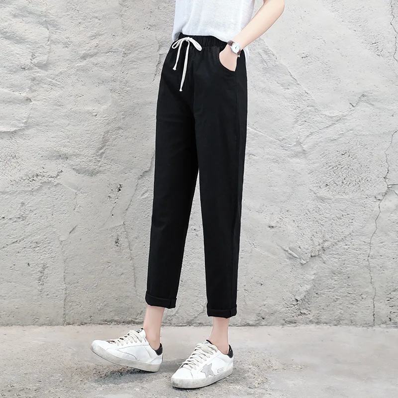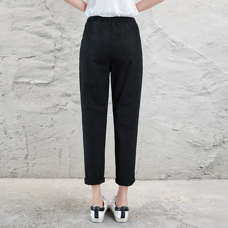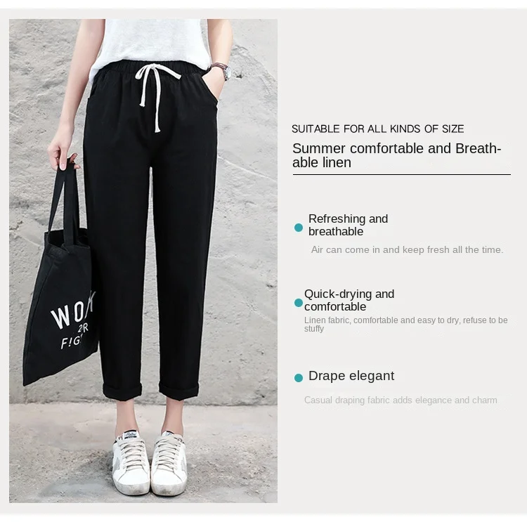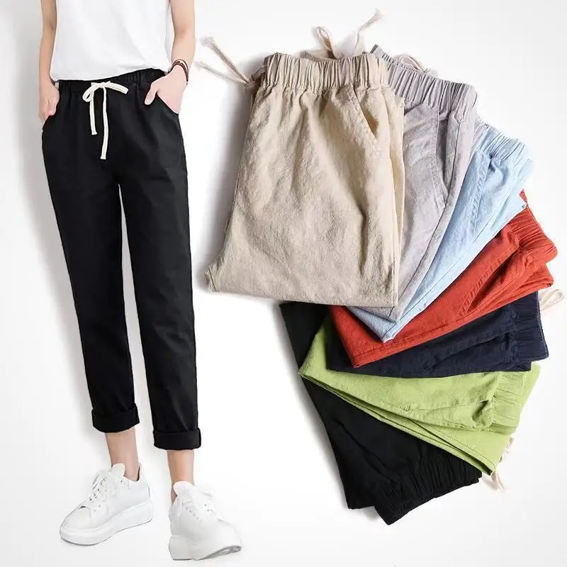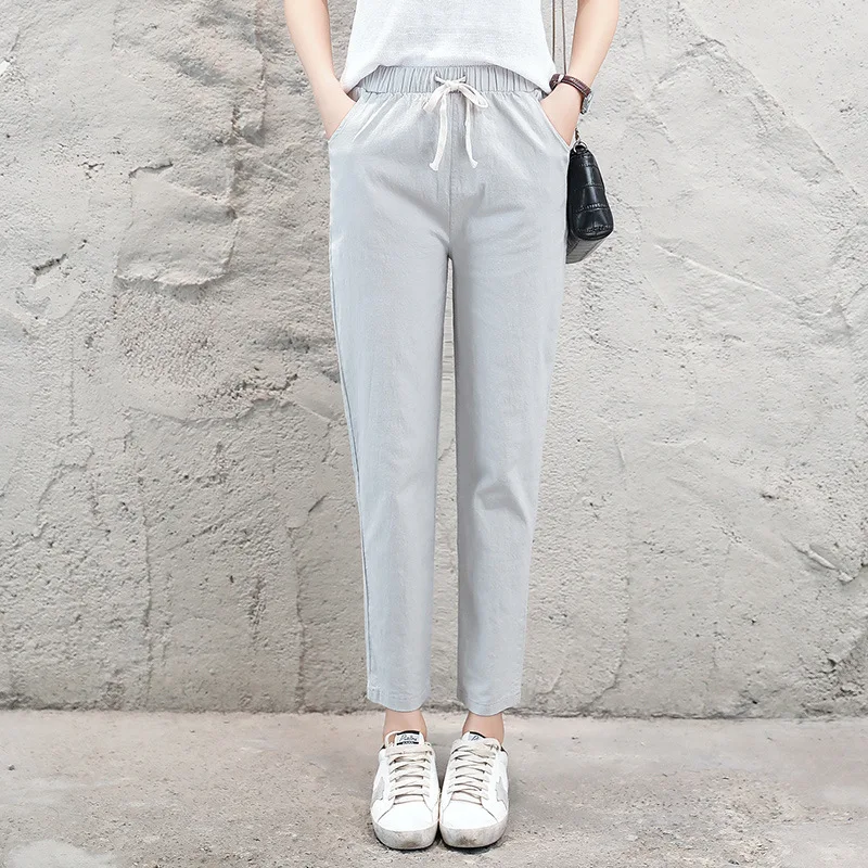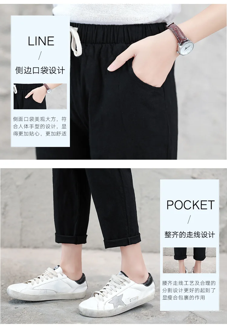 Women's Cotton linen pocket haroun pants thin spring and summer fashion casual pants брюки женские штаны pantalones de mujer