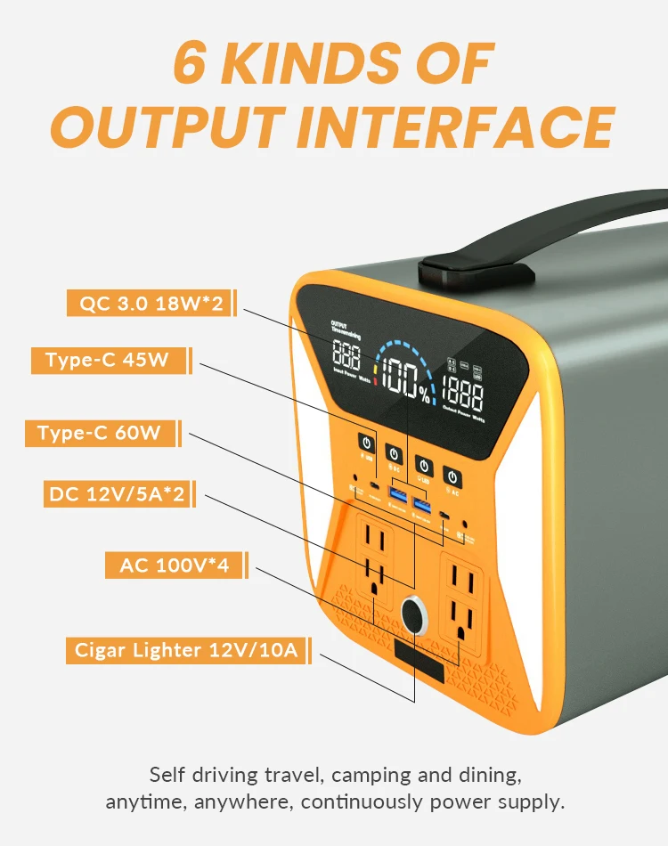 AC Output: Output rated Voltage, 100V(95 ~ 115V) / 220V(215 ~ 225V) Rated output power: 300W 500W 1000W USB Output: 2 x USB-A 22.5Wmax, 5V/3A, 9V/2A, 12V/1.5A, 1 x USB-C 5~20V/3A( PD3.0) | ||||