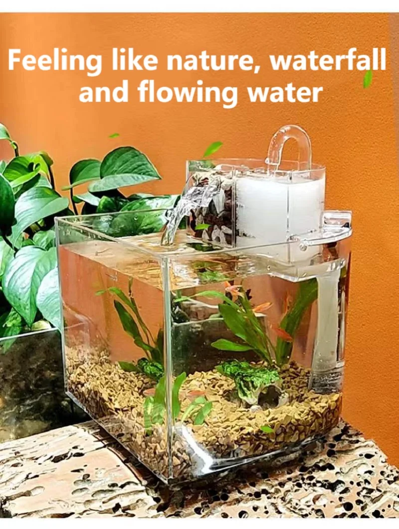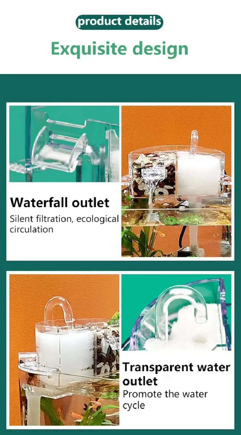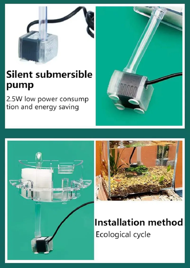 Waterfall outlet, silent filtration, ecological circulation, transparent outlet, promote water circulation, silent submersible pump, 2.5W low energy consumption, installation method, ecological circulation