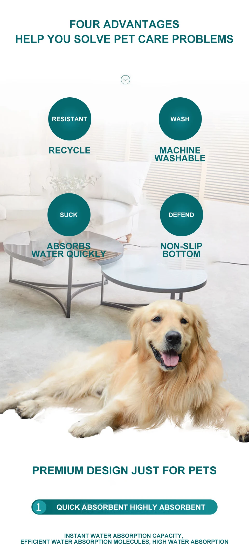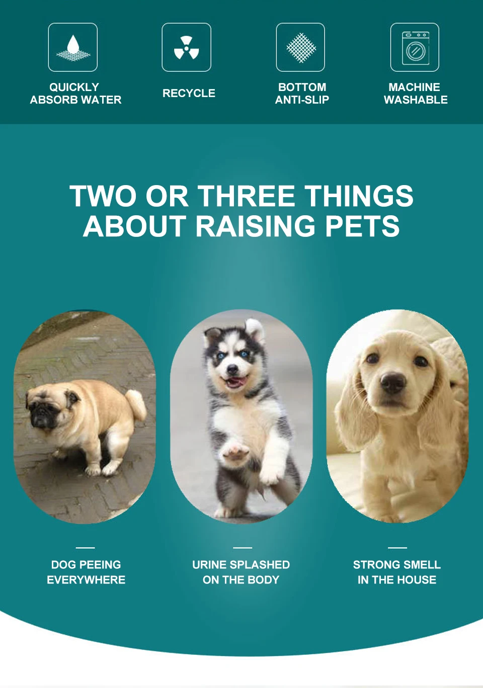 Type:Dogs4 ultra absorbent layers with non-slip bottom. Odor resistant, hypoallergenic, eco friendly reusable.