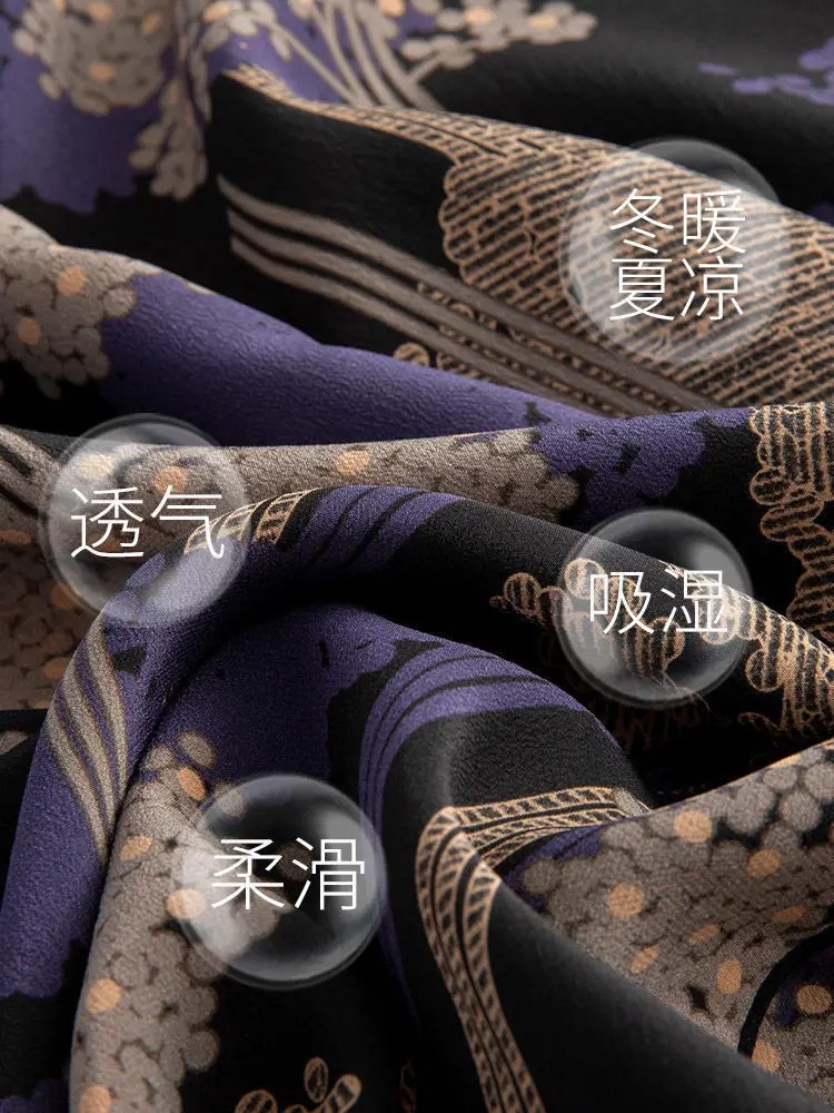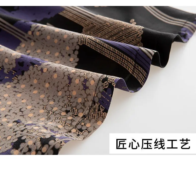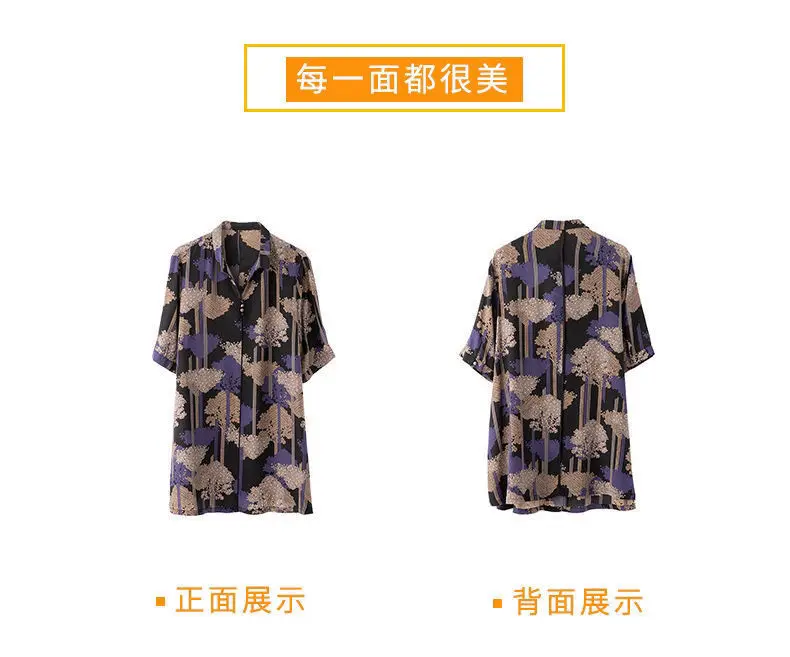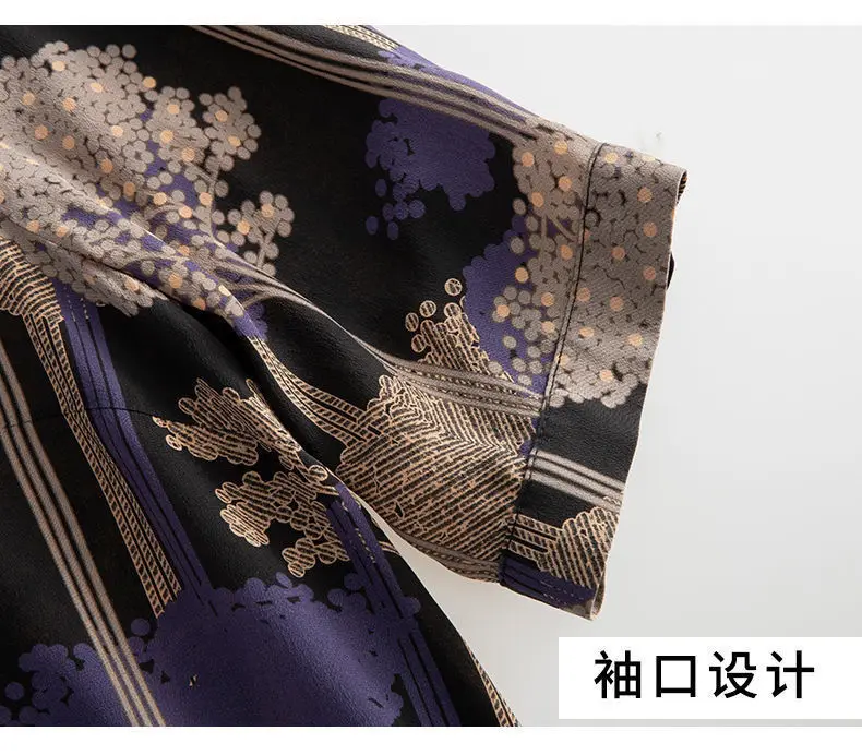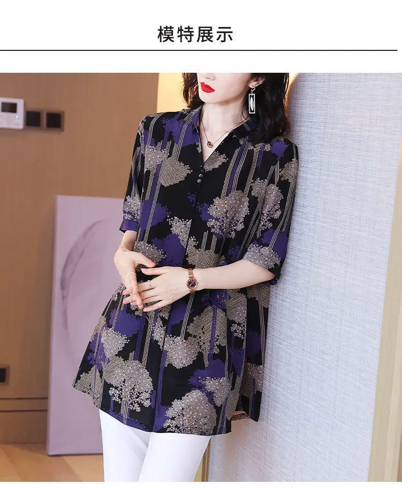 Fashion Elegant Printing Button Long Chiffon V-Neck Half Sleeve Loose Blouse