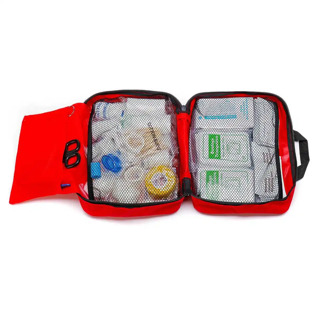 Bright red bag and striking cross symbol makes the kit easy to find in an emergency case.