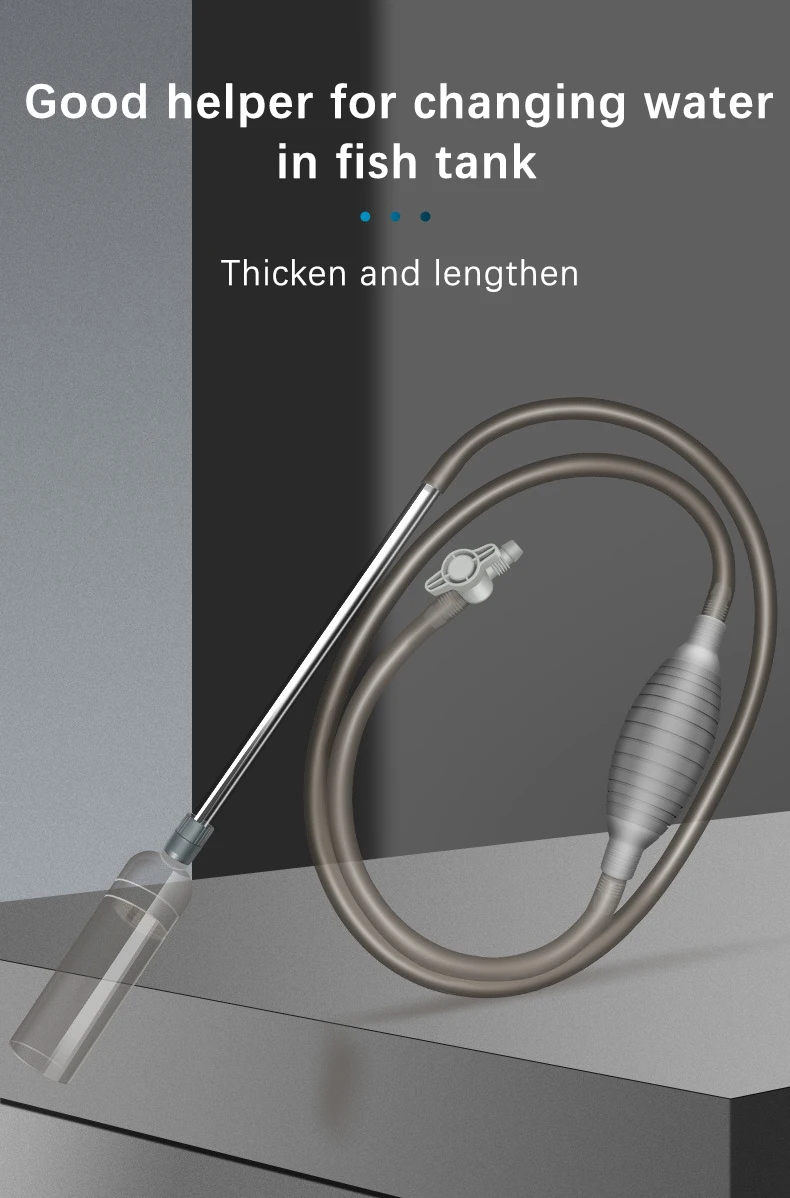 This model has two colors, gray and blue, with a total length of 2.6M. It comes with two accessories-duckbill head and small suction head, which are thickened and thickened to meet your various water change and cleaning needs. Excellent quality, built-in Filter mesh fence, change water, wash sand and pick up 3 in 1.