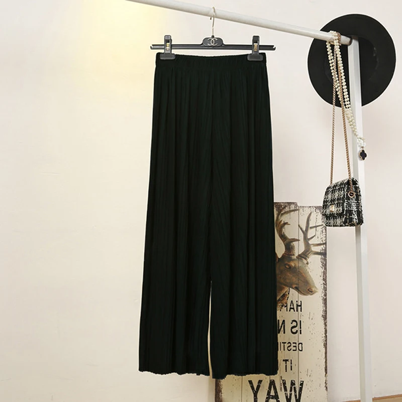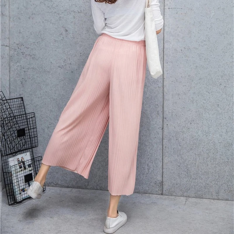 Fold Pleated Palazzo Pants Mid Waist Wide Leg Pants For Women