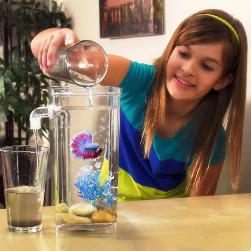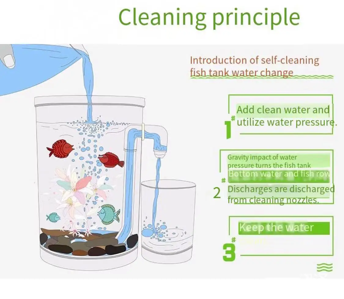 2. The gravity impact of water pressure sprays the dirty water and fish manure at the bottom of the fish tank from the cleaning nozzle.