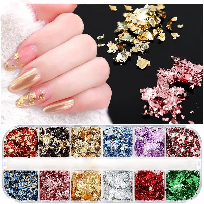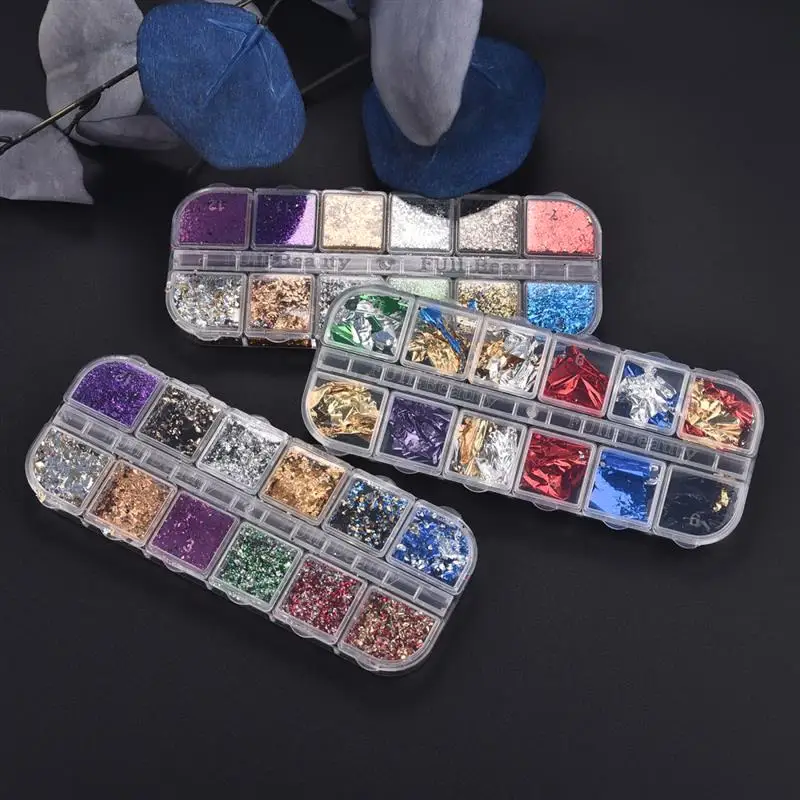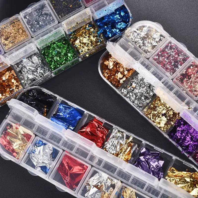 12 Color Gold Foils Glitter Flakes Confetti Filling DIY Epoxy Resin Mold Filler Nail Art Decoration Foil Paper Jewelry Making