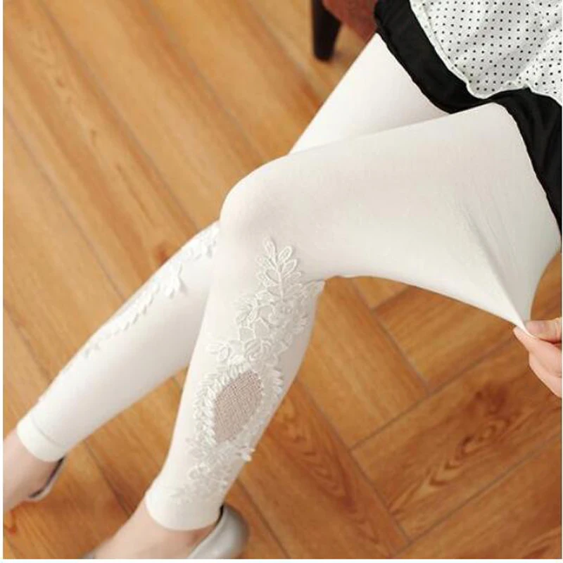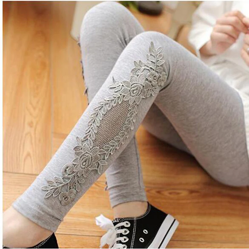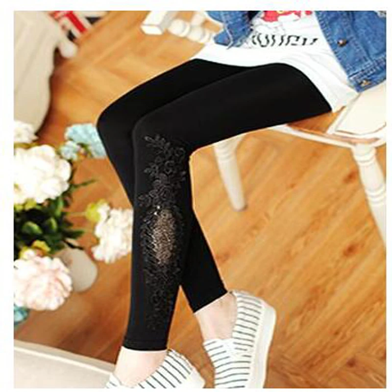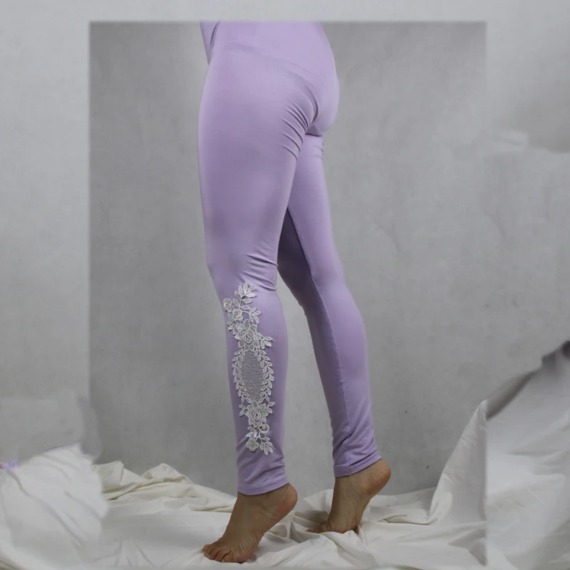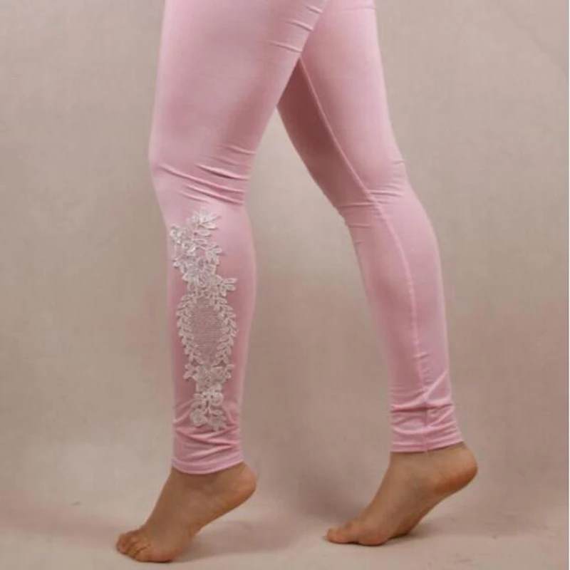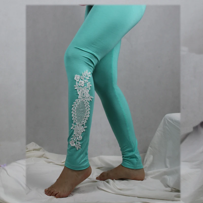 Leggings Solid Color Modal Lace Decoration Skinny Jeggings Pants
