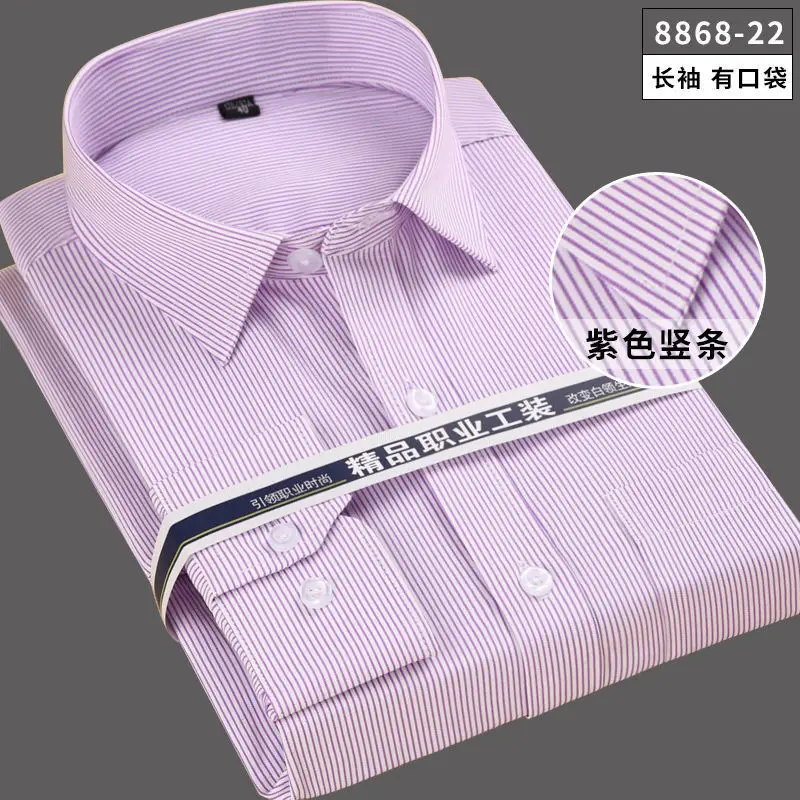 Men's Plaid Long Sleeve Slim Fit Designer Business Striped Social White Shirts