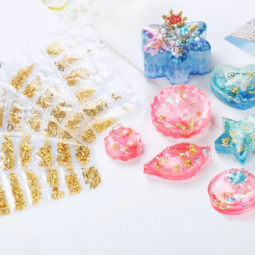 Mix Glitter Metal Frame Gold Nail Art UV Epoxy Resin Molds Jewelry Filling Materials For DIY Crafts Jewelry Making Accessories