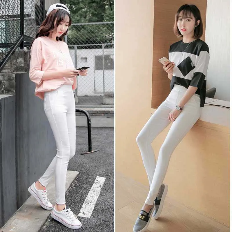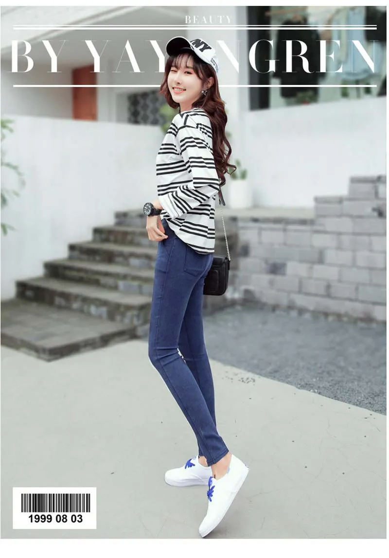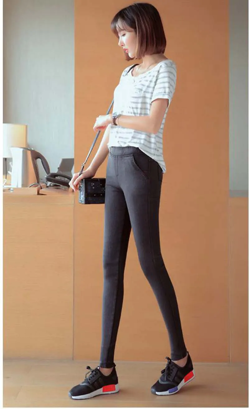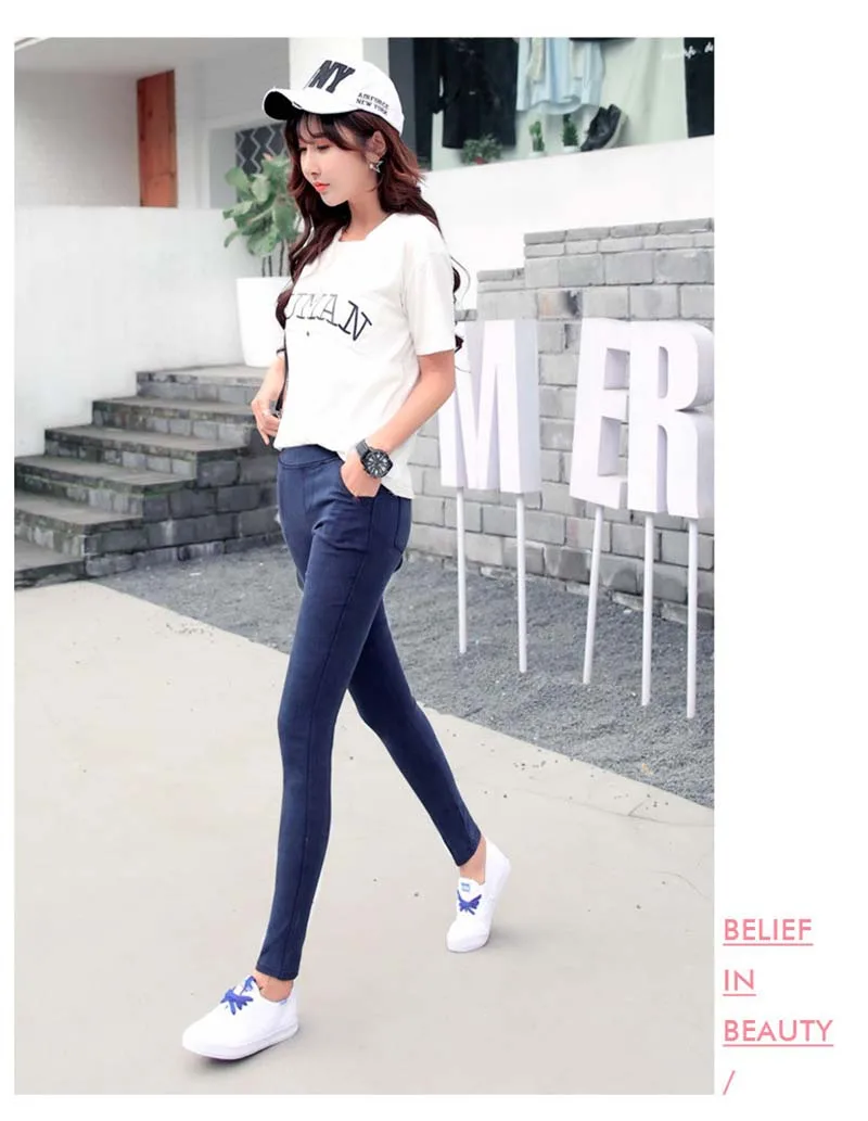 OL solid navy black pocket skinny cotton blended pants elastic fitted ankle