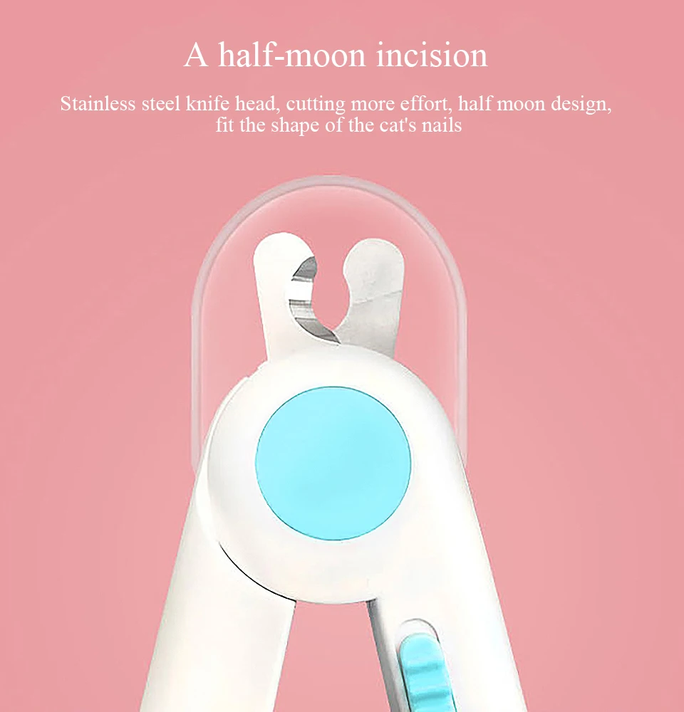 1. The stainless steel blade can be wiped and cleared at will, without leaving any stains. The stainless steel cutter head is more labor-saving to cut. The cutter head is designed with a half-moon shape to fit the shape of the cats nails.