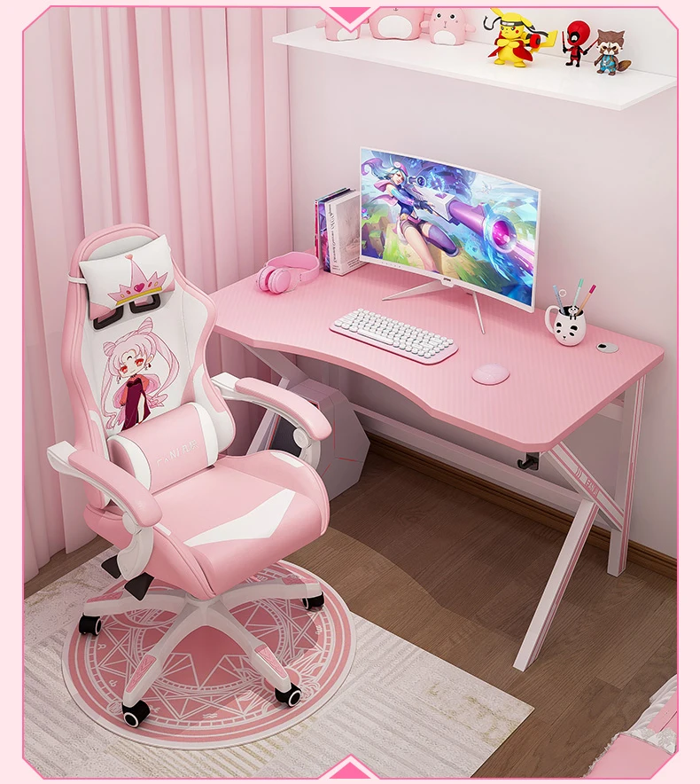 Pink Computer Desk E-sports Table Anchor Live White Computer Desk