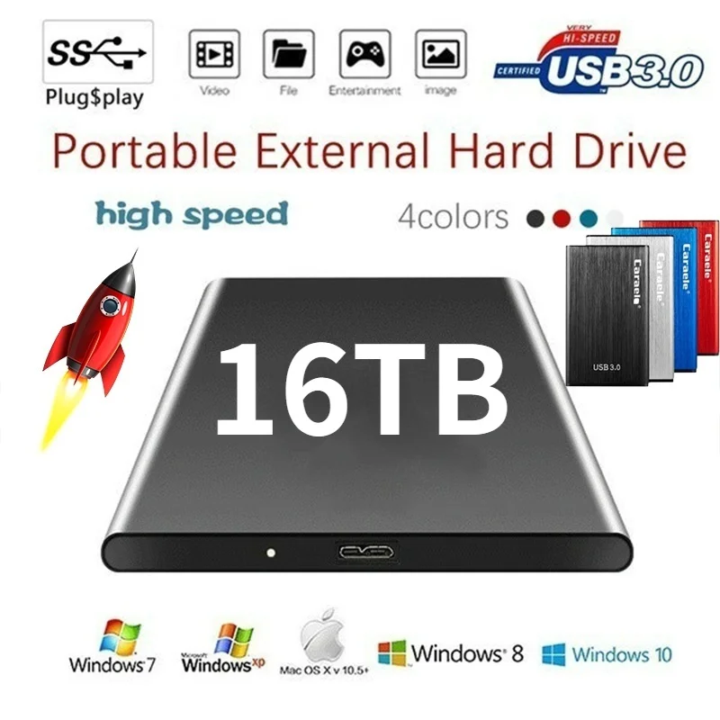 - Capacity:2T/4TB/8TB 16TBFeatures: - portable 2.5'' USB 3.0 external hard drive SATA hdd storage, plug and play. - Ultra slim and compact size, perfectly fit your palm, easy to carry. - USB 3.0 super speed, data transfer rate up to 5 Gbps, about 10 times faster than USB 2.0 standard, compatible with USB 2.0. - With shockproof, waterproof and anti-scratch design. The LED indicator can monitor storage activity briefly. - It can be used as extra storage device for game console controller, laptop, desktop computer, surveillance cameras. Provides ample storage space for your music, movies and other files. Specification: - Size: 130*75*12mm / 4.8x2.8x0.4 inch - Material: metal - Color: Red ,Blue,Black,Silver - Interface: USB 3.0 - Capacity: 2T/4TB/8TB 16TB - Caching: 8MB - Speed: 5400RPM - Working temperature: 32°-140°F(0°-60°C) - Indicator: High Refective Blue LED Indicator Package Includes: 1 *Portable External Hard Drive 1 *USB Cable Package Includes: 1 *Portable External Hard Drive 1 *USB Cable Note: Color might be slightly different due to the color calibration of each individual monitor. Please allow slightly measuring deviation due to manual measurement.