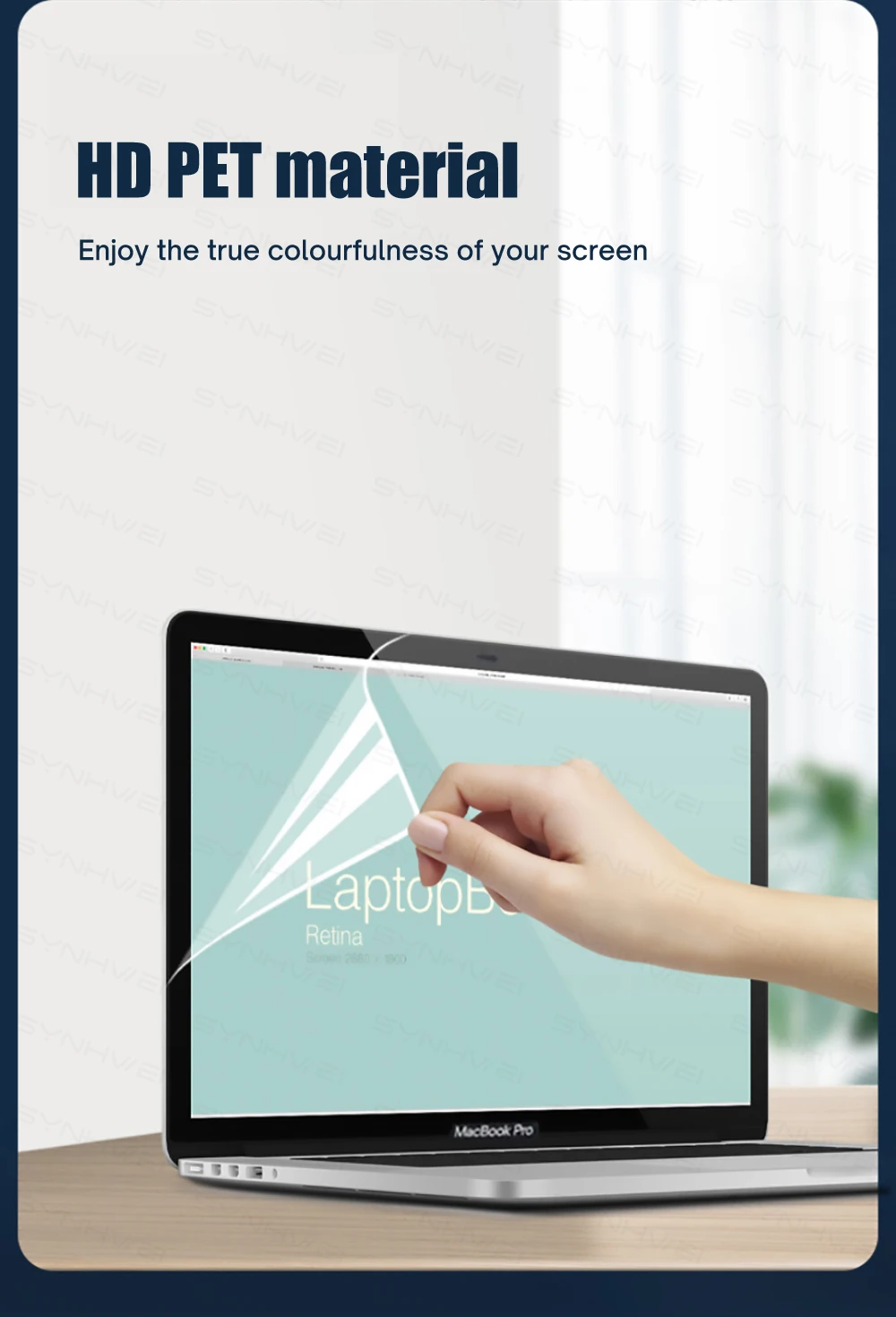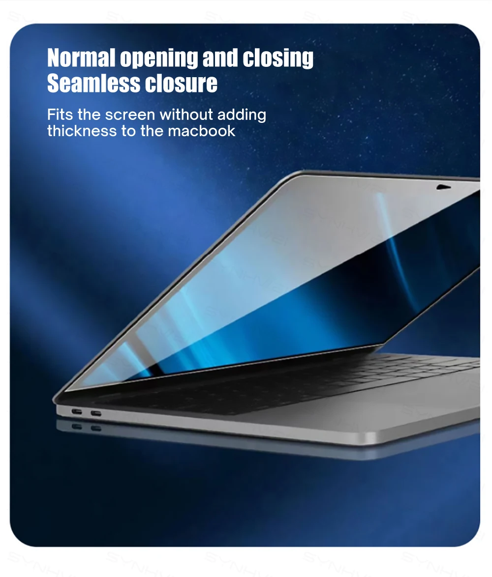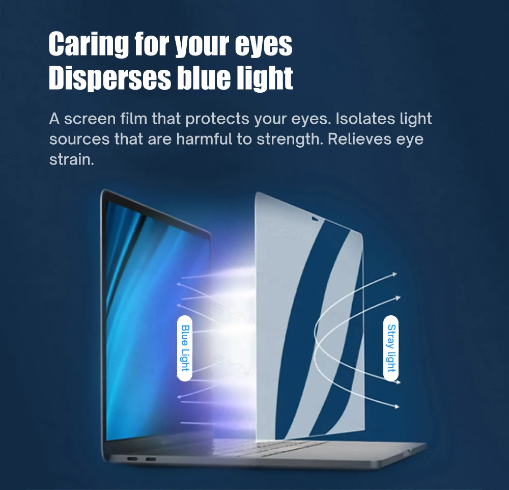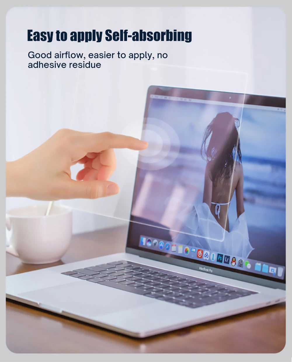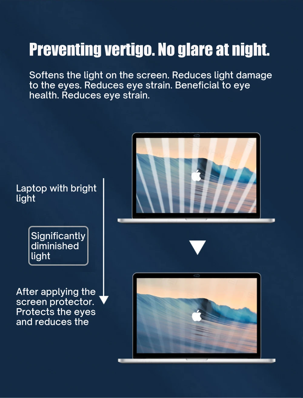 【Easy to install】: Macbook screen protector uses special silicone resin, before installation, clean the screen and make sure it is dust-free, align the product with the screen,let the silicone stick to the screen.Blue light carrying Anti-reflective