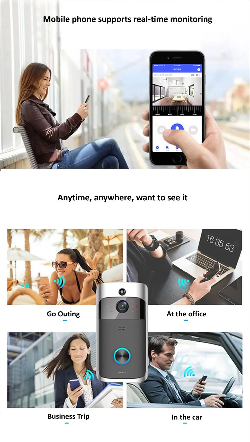 Smart WiFi Video Doorbell Camera Wireless Call Intercom With Chime Night Vision Door Bell Ring for Phone Home Security Cameras