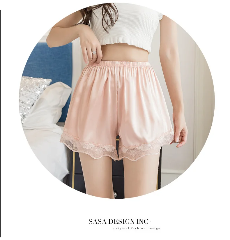 10:Boxer women,boxers for women,Women sleep pants,seamless pantiesThin Cool Comfortable Sleep Botttom Safety Short Pant Women Summer Lace Satin Ice Silk Loose Homewear Under Skirt Pajamas Shorts
