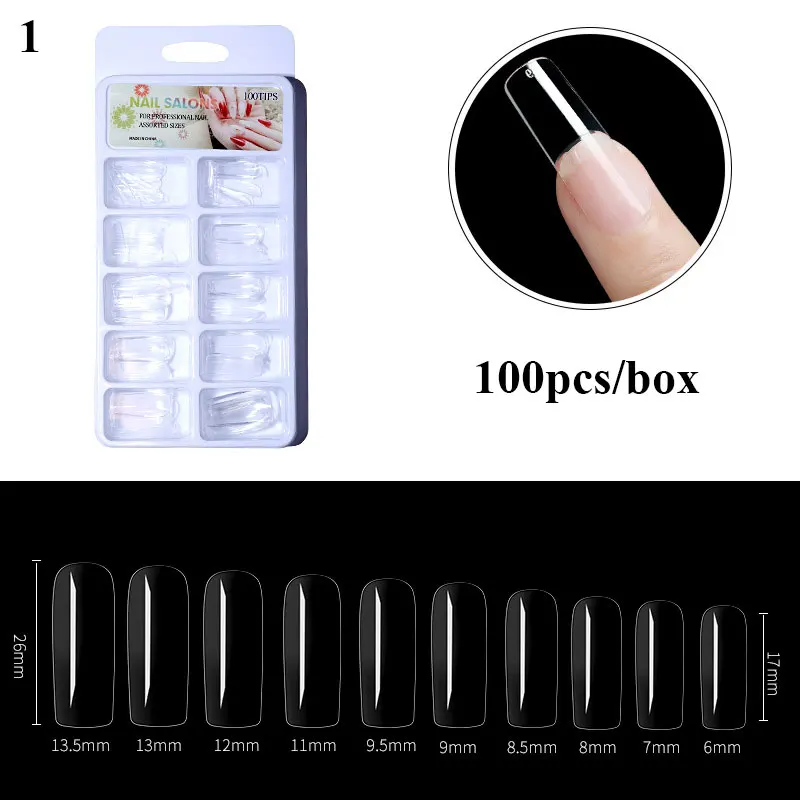 100pcs/box Clear Transparent Seamless Fake Nails Full Coverage False Nails