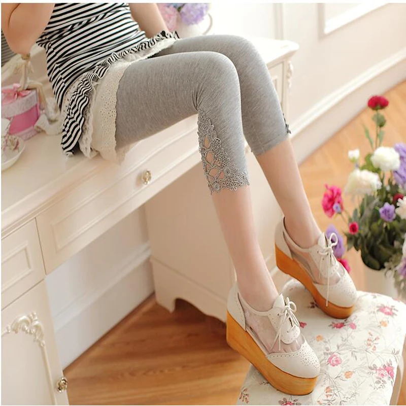 3/4 Short Crochet Lace Modal Cotton Spandex Custom Made Jeggings Pants