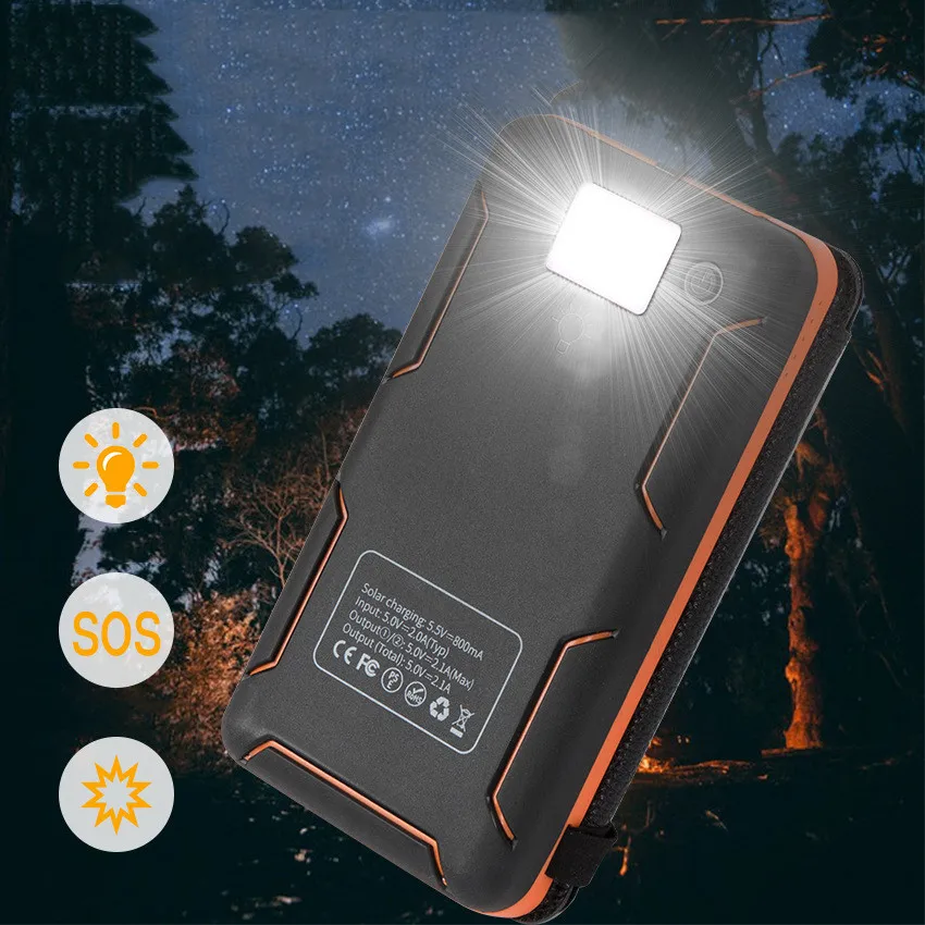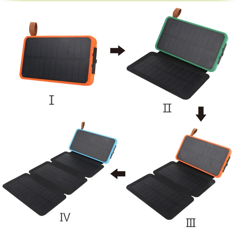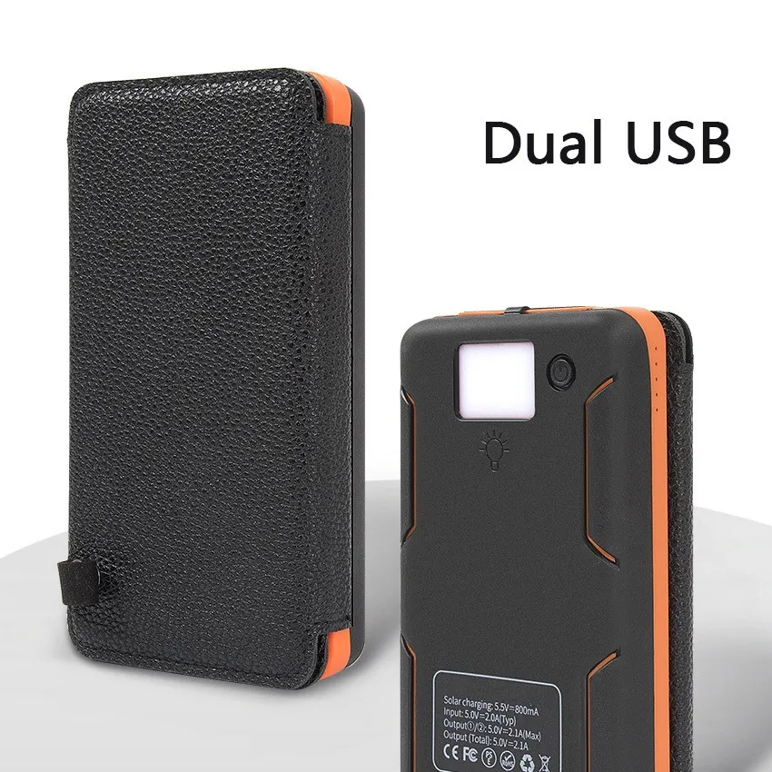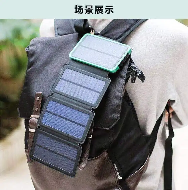 Foldable Solar Power Bank For iPhone Xiaomi Mi Powerbank Portable Charger External Battery Waterproof Poverbank with FlashlightSpecification:Name: Folding solar panel powerbankProduct features: waterproof, dustproof, anti-fall three-proof function, glare camping lightModel: TS-803Solar power: single crystal (I) 2W / (II) 4W / (III) 6W / (IV) 8WInput: DC5V/2.1AOutput: DC5V/2.1A (single port maximum output)Material: plastic ABSColor: black green, black blue, black orange, black and whiteCompatible with: for ipad, for iphone, other brand mobile phones,for PSP, MP3, MP4 and other digital products![]()