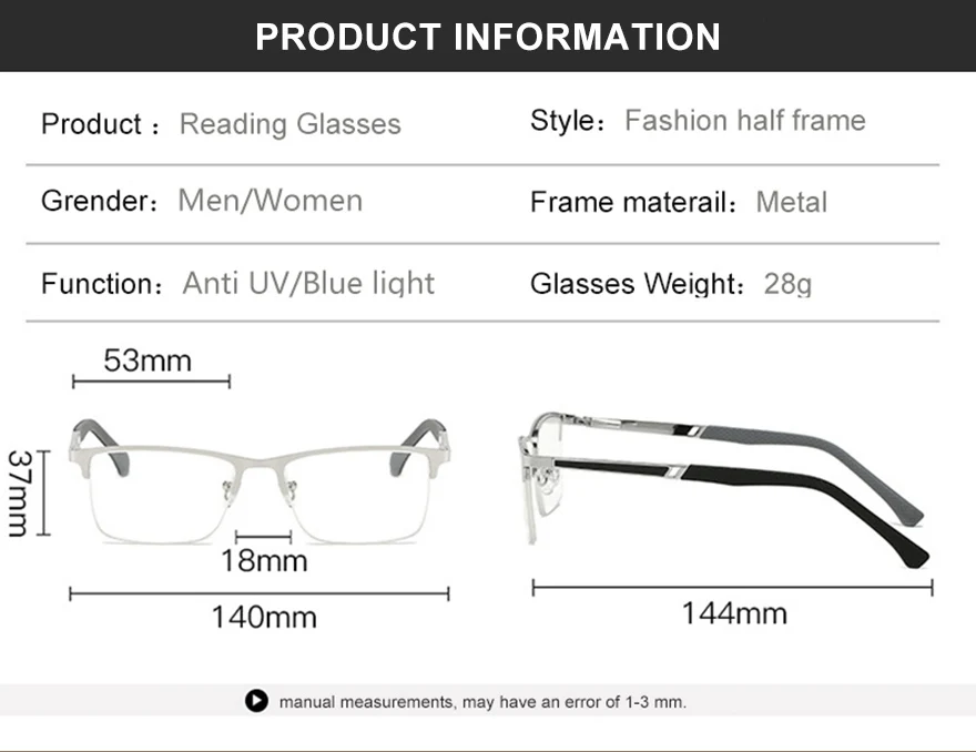 New Trend Reading Glasses Reading Glasses Men and Women High Quality Half Frame Diopters Business Office Men Reading Glasses