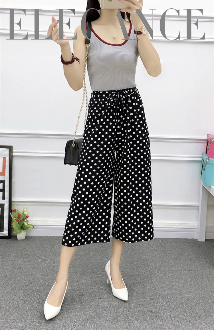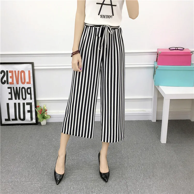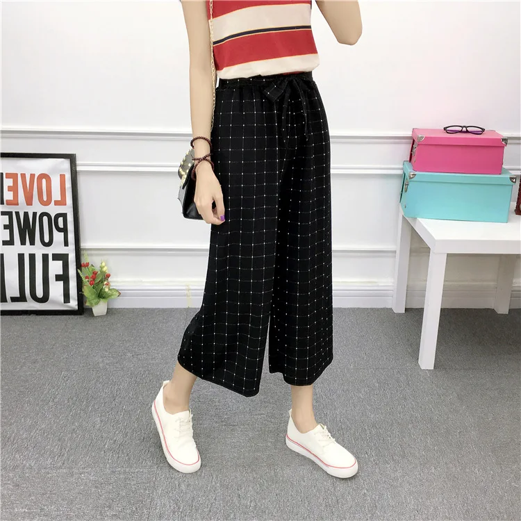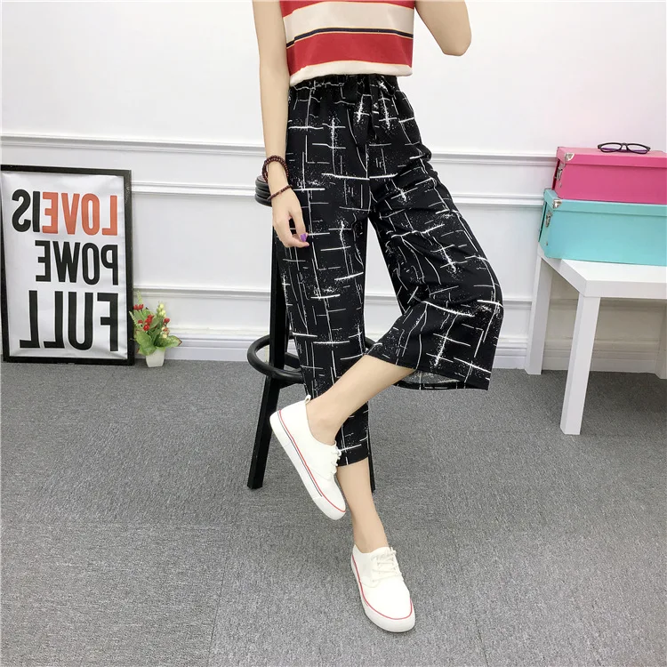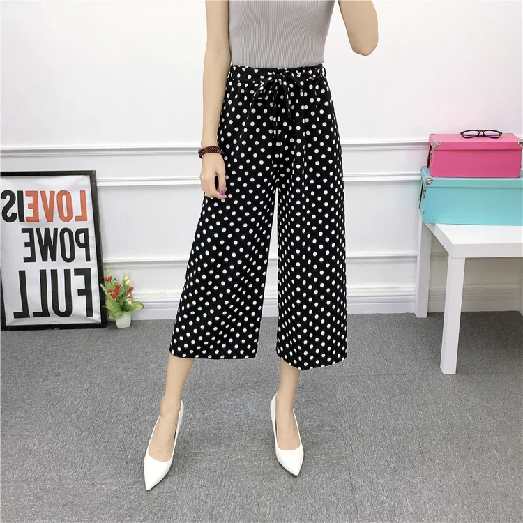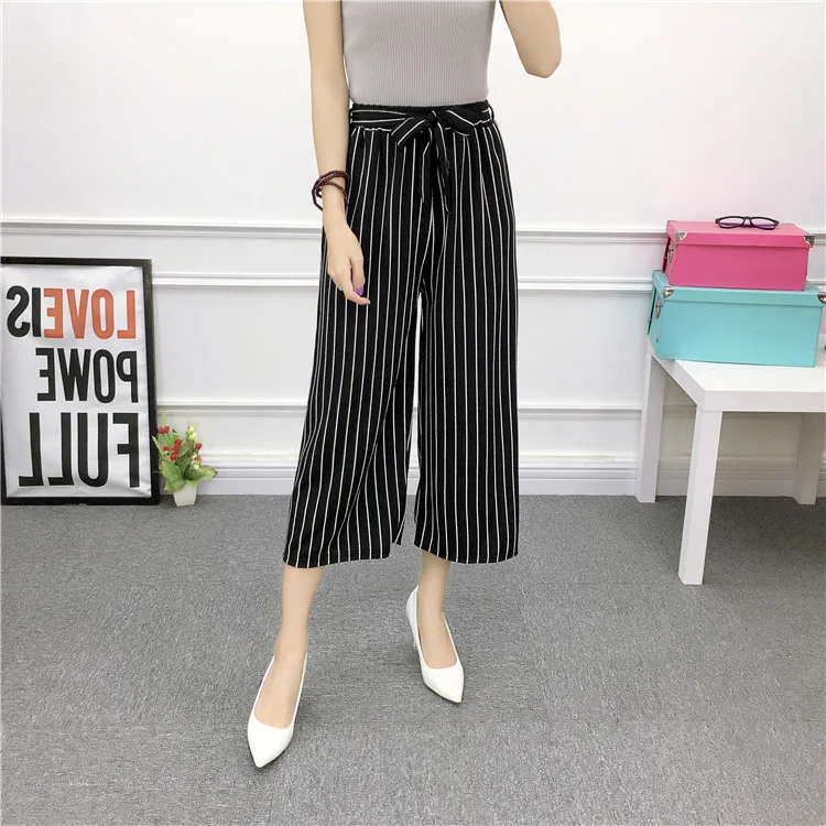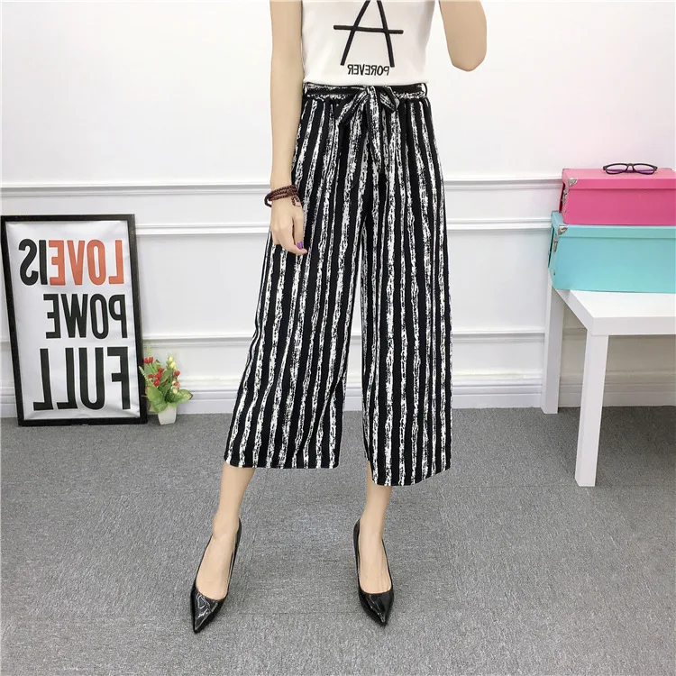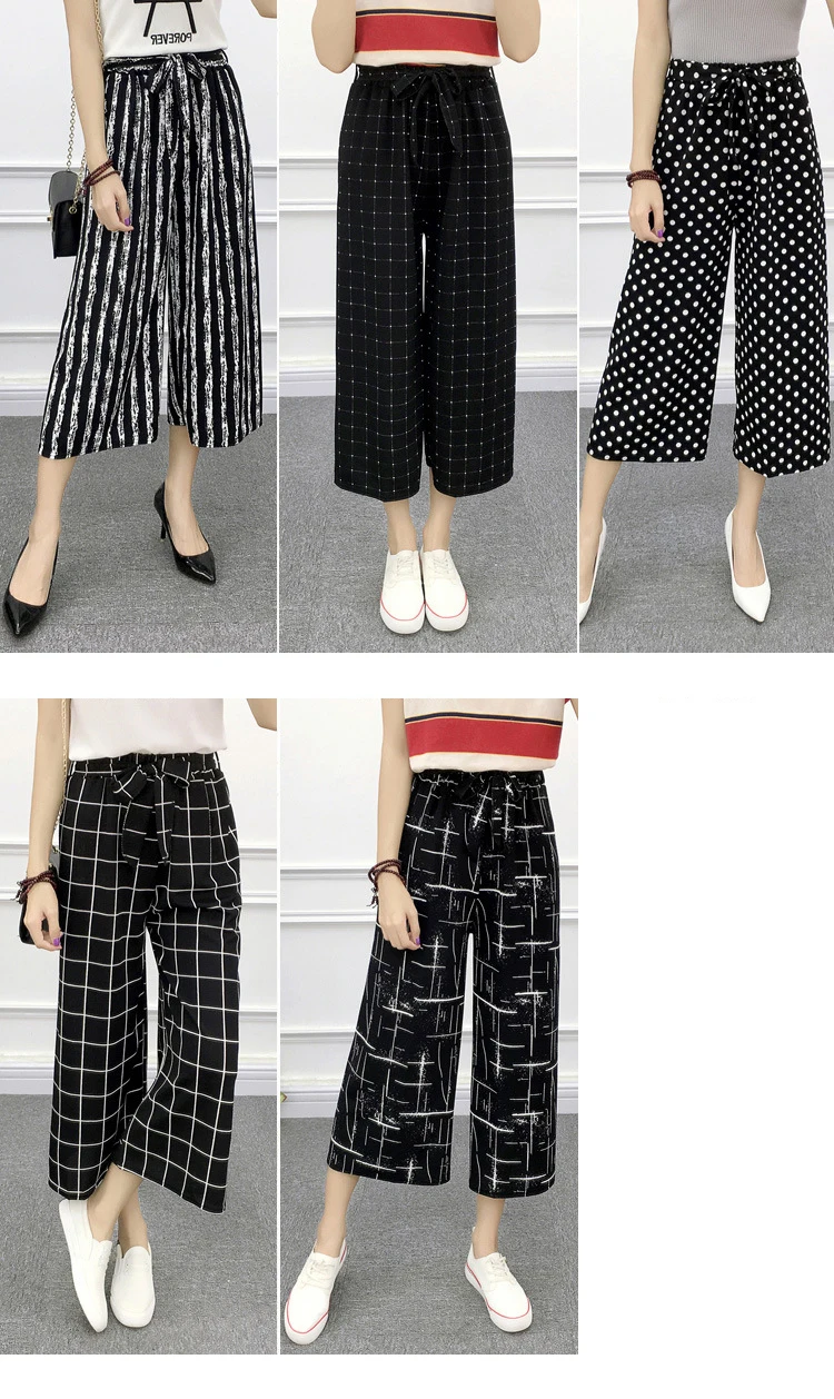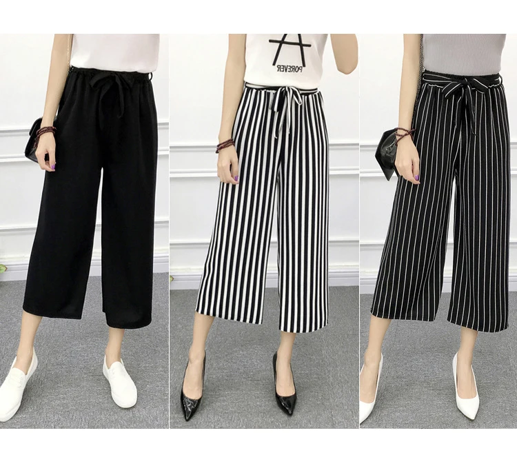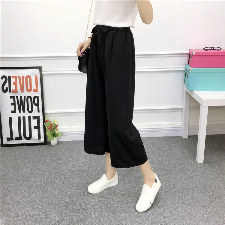Casual Summer Slacks Pants Women Loose Wide-Leg Ankle-Length Long Trousers