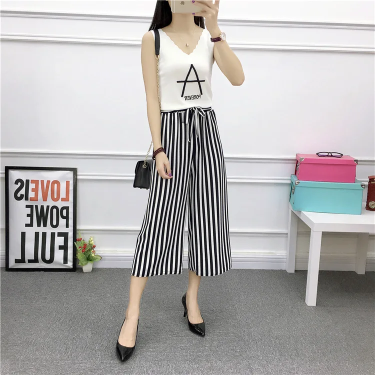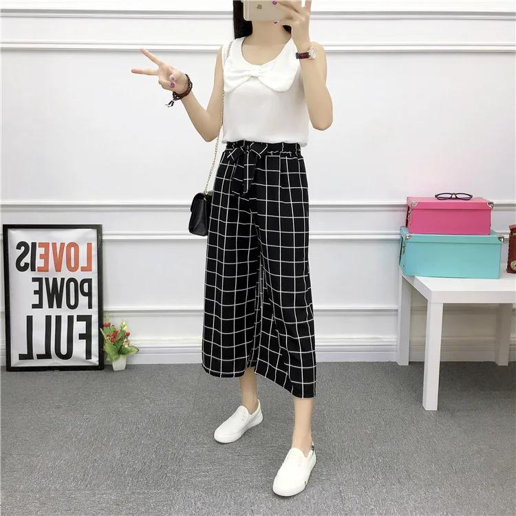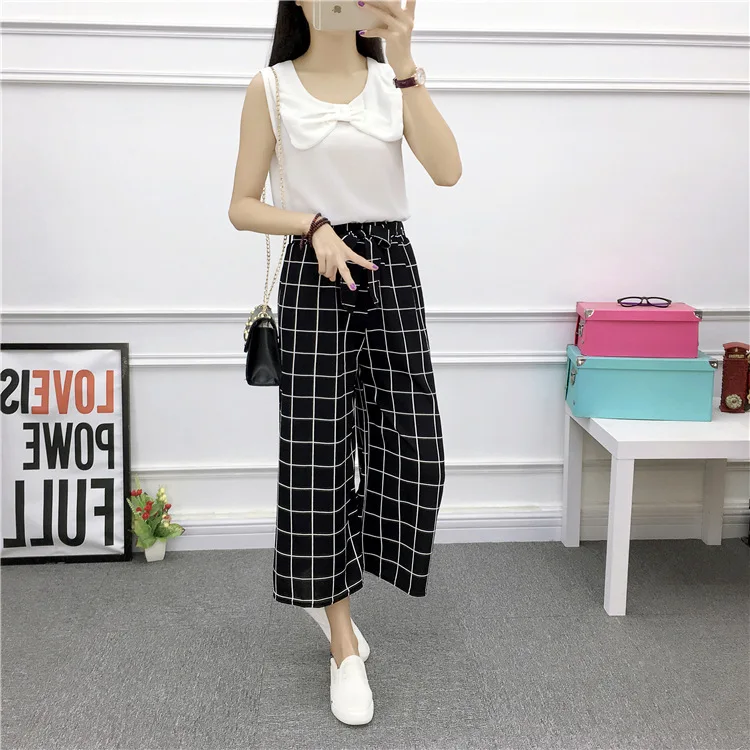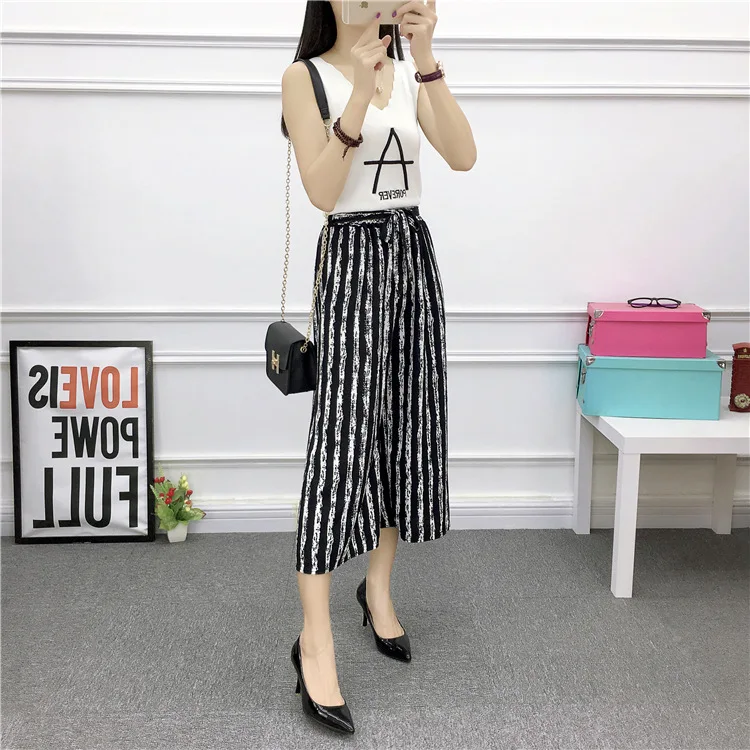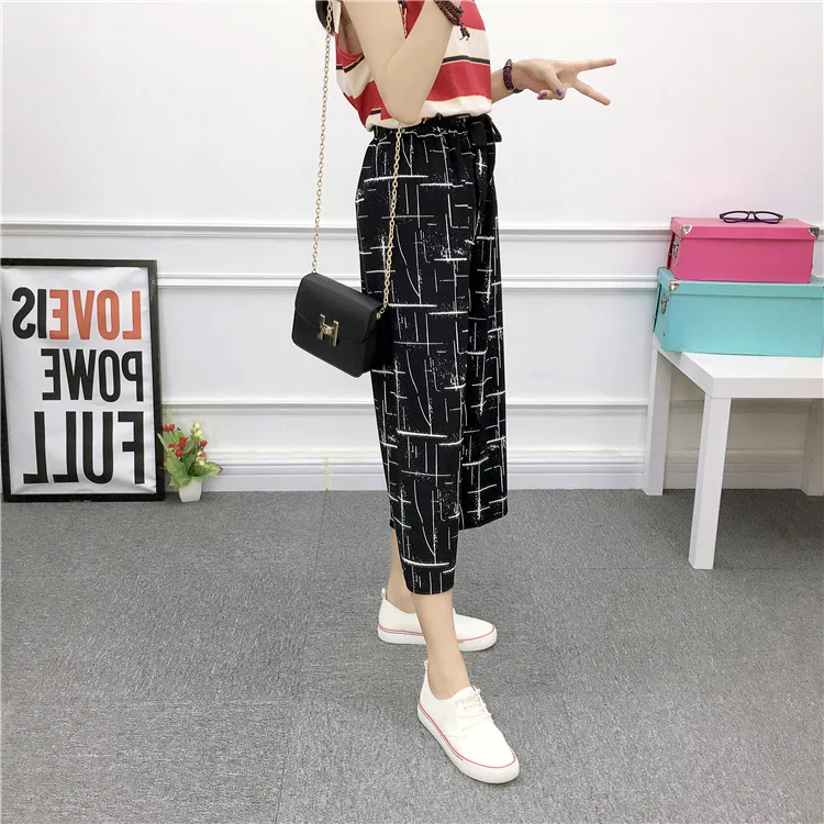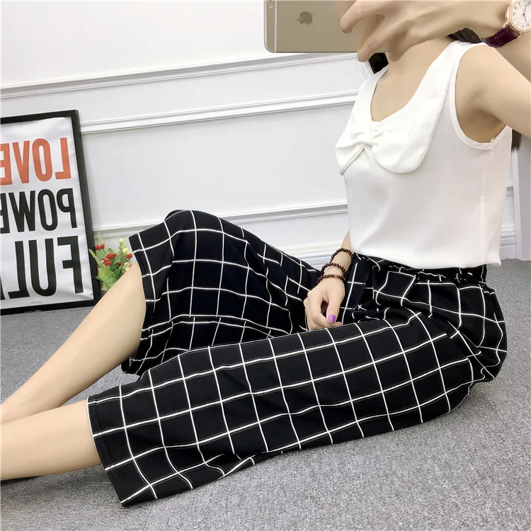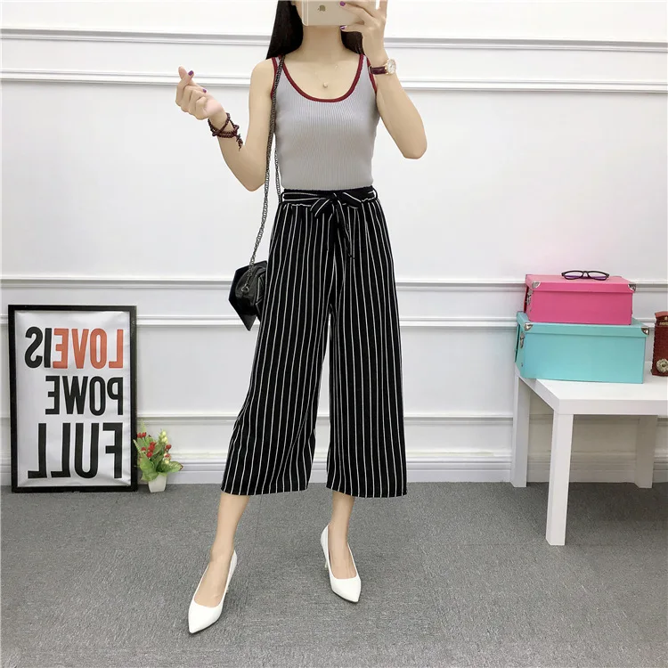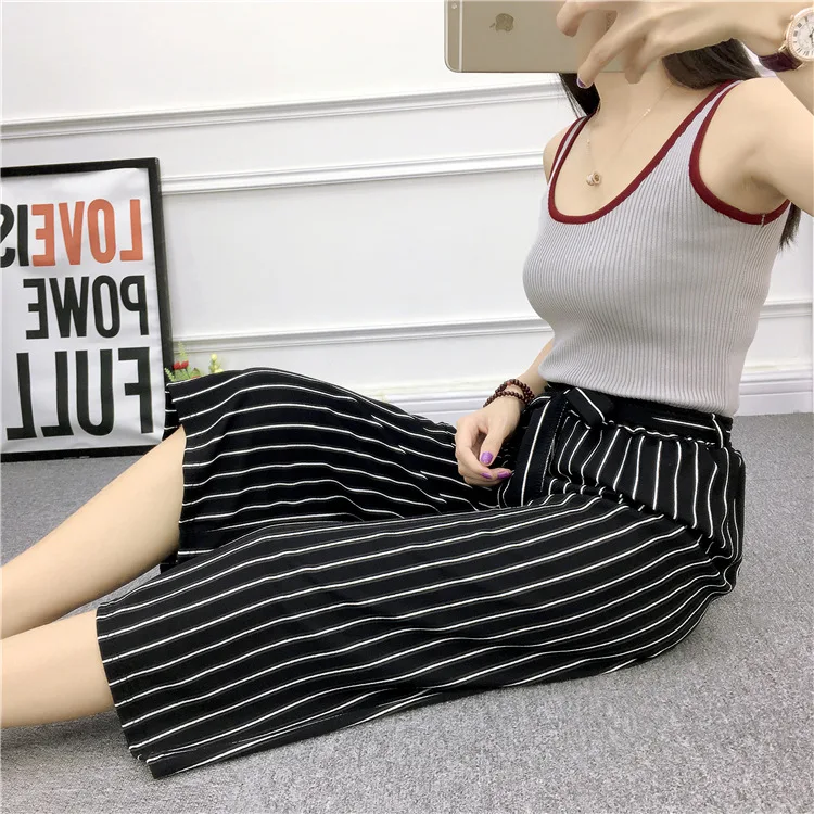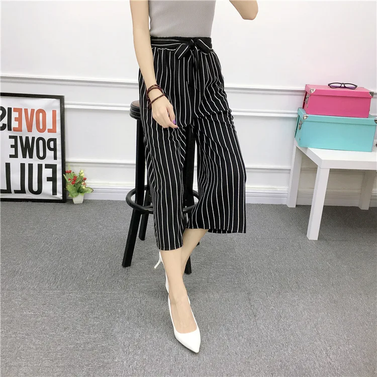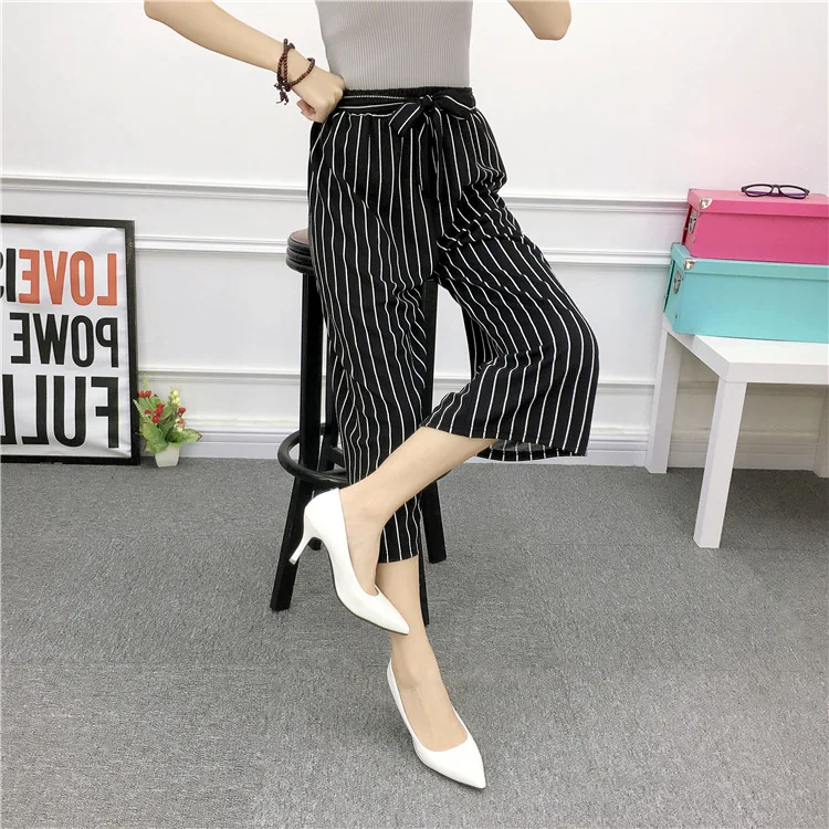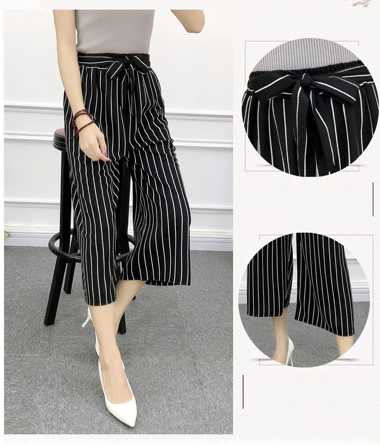 Casual Summer Slacks Pants Women Loose Wide-Leg Ankle-Length Long Trousers