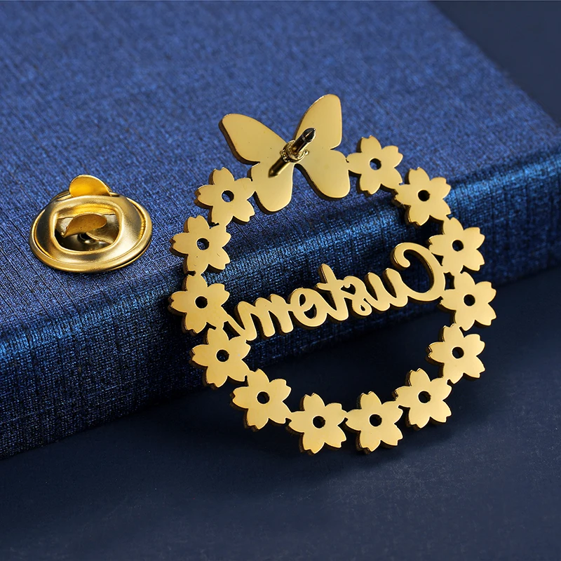 Customized Name Brooches Stainless Steel Letter Butterfly Flower Badges Brooch