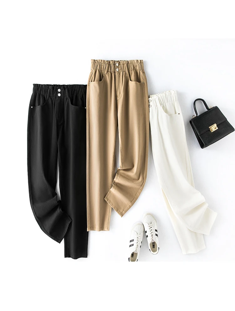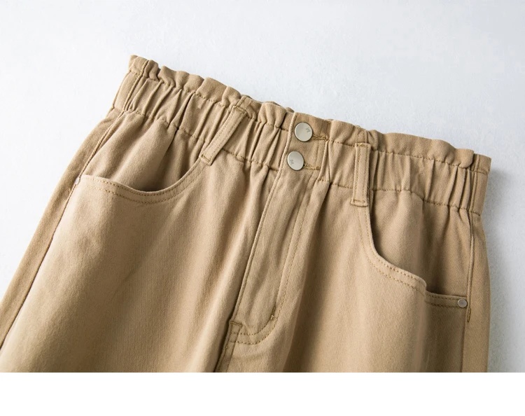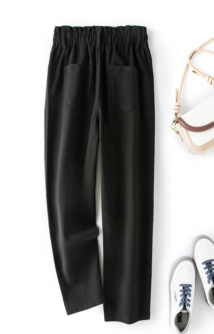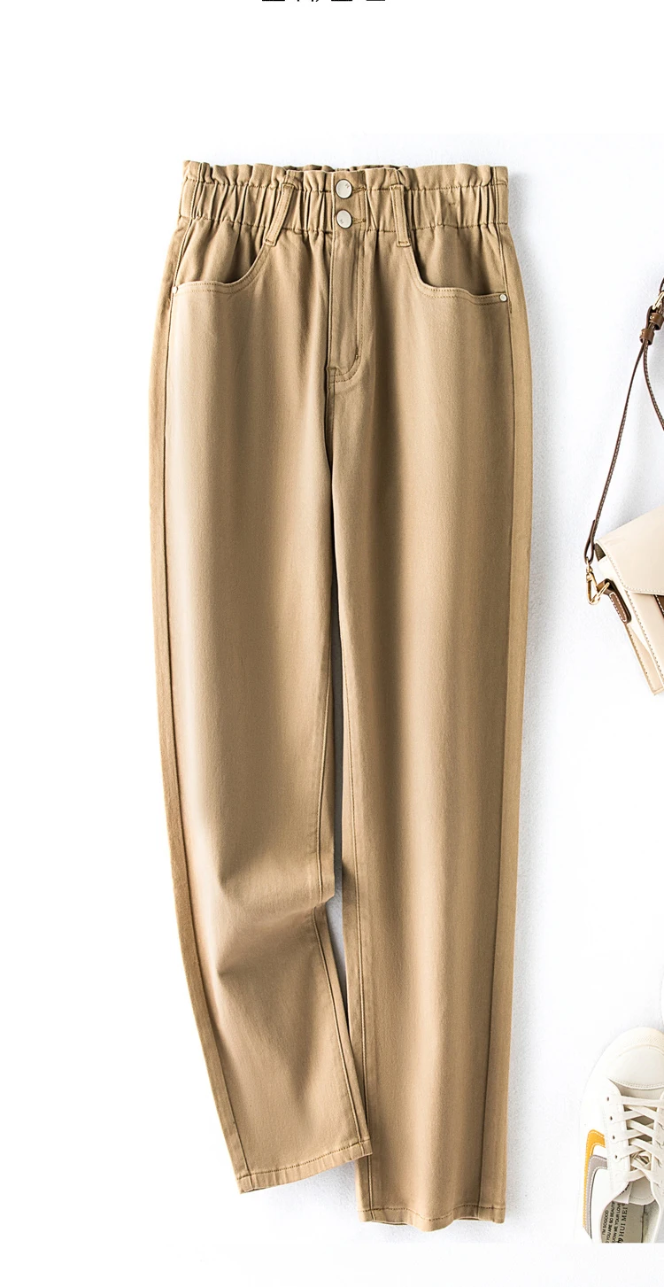 elastic high waist thin harem Loose Thin Mom button Pants