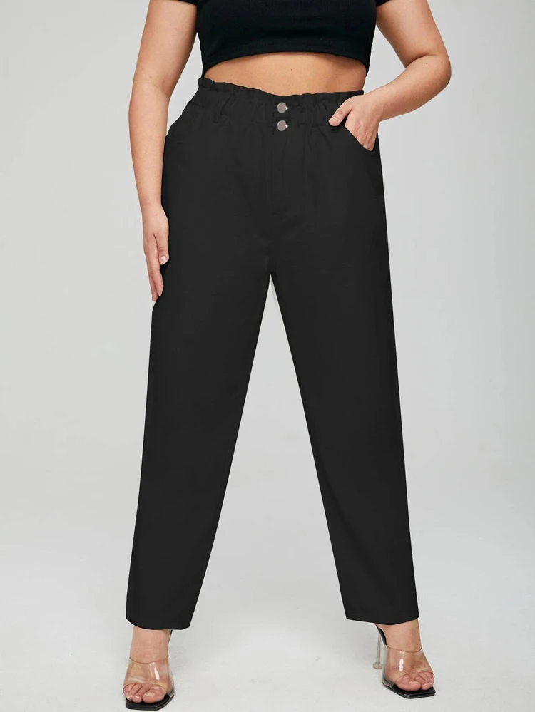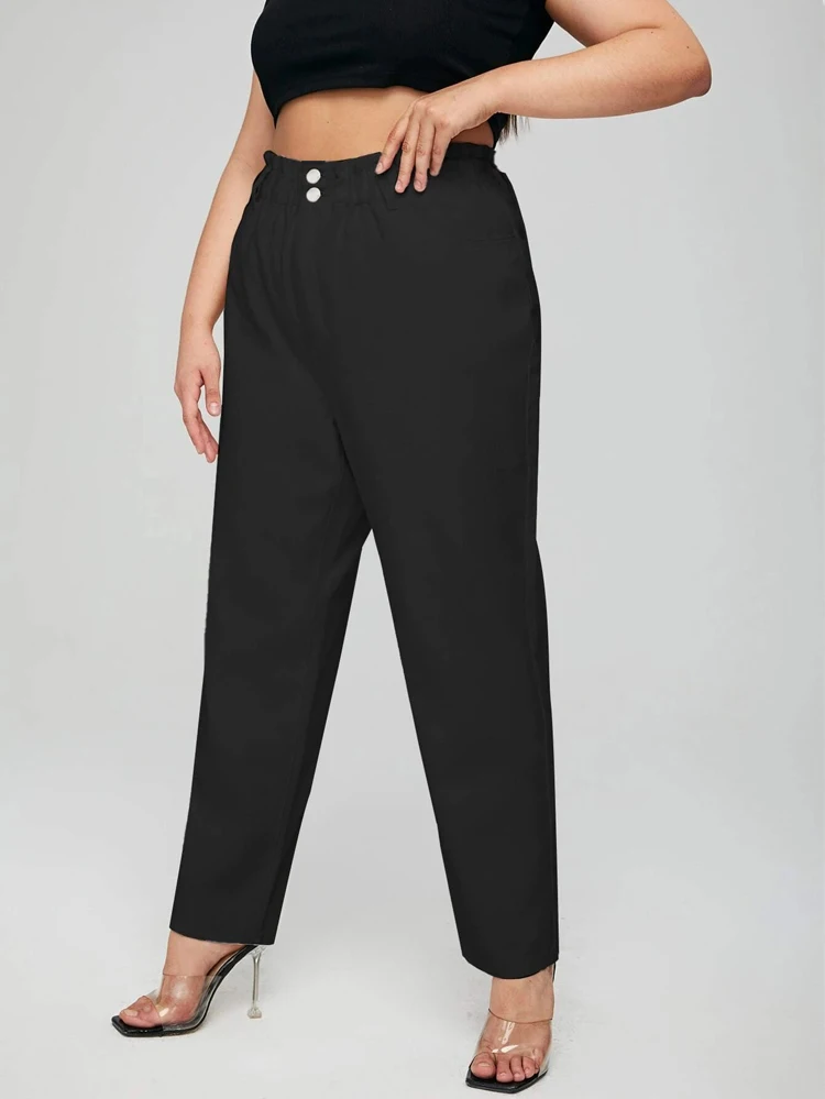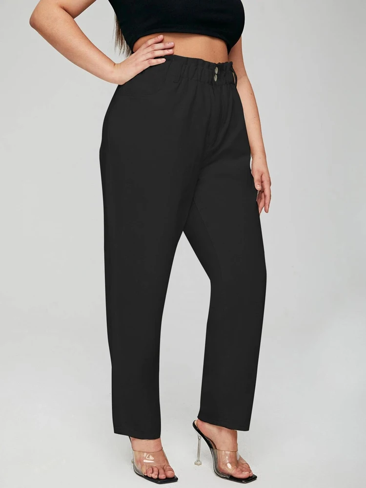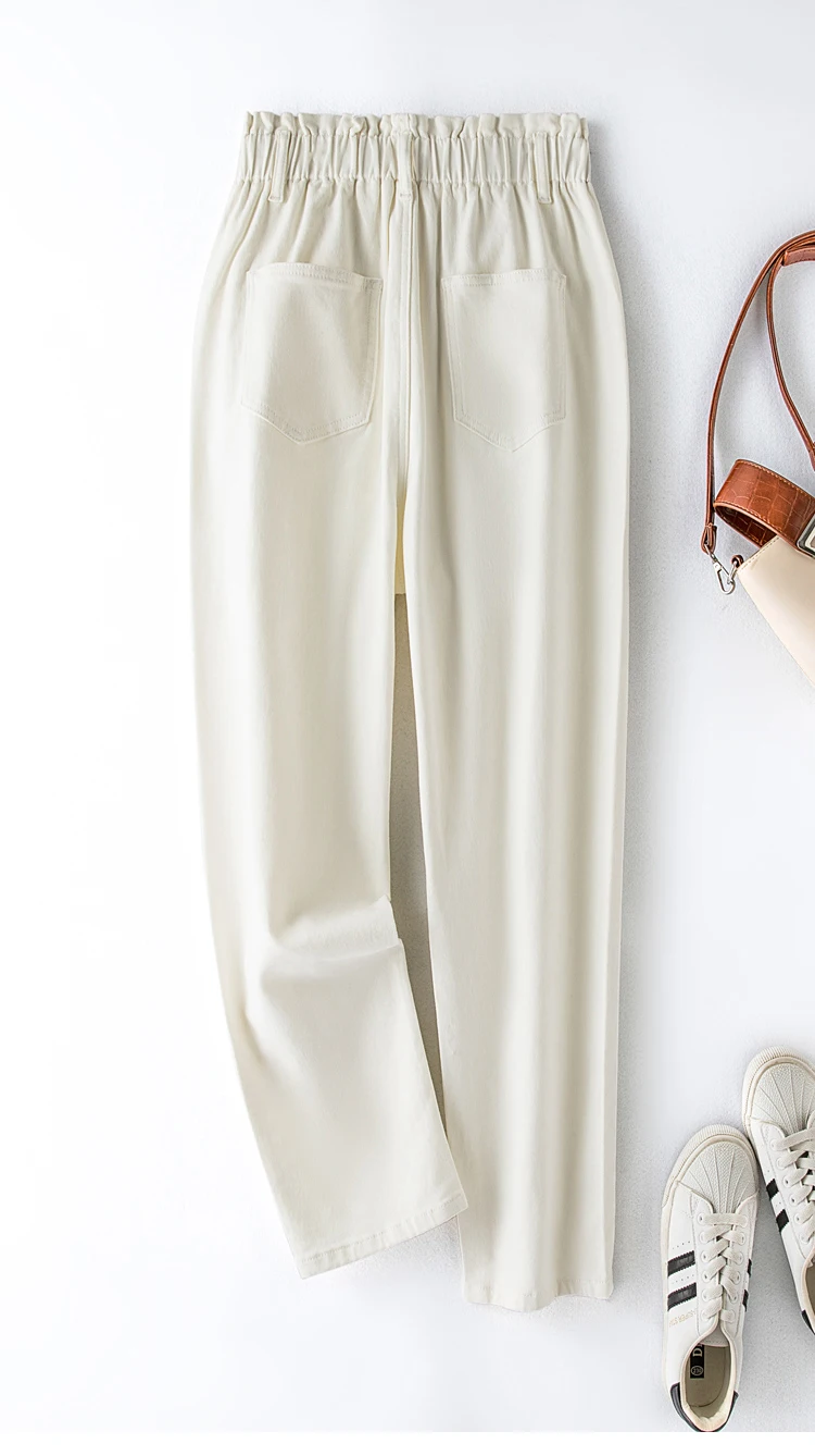 elastic high waist thin harem Loose Thin Mom button Pants