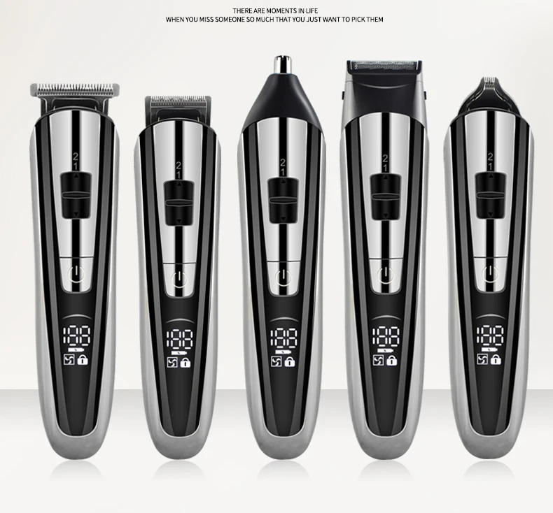 T Barber cutter head*1+shaving cutter head*1+nose hair cutter head*1+U Barber cutter head*1+V Barber cutter head*1+USB data cable*1+English manual* 1+Cleaning brush*1+4*Limit comb+base*1