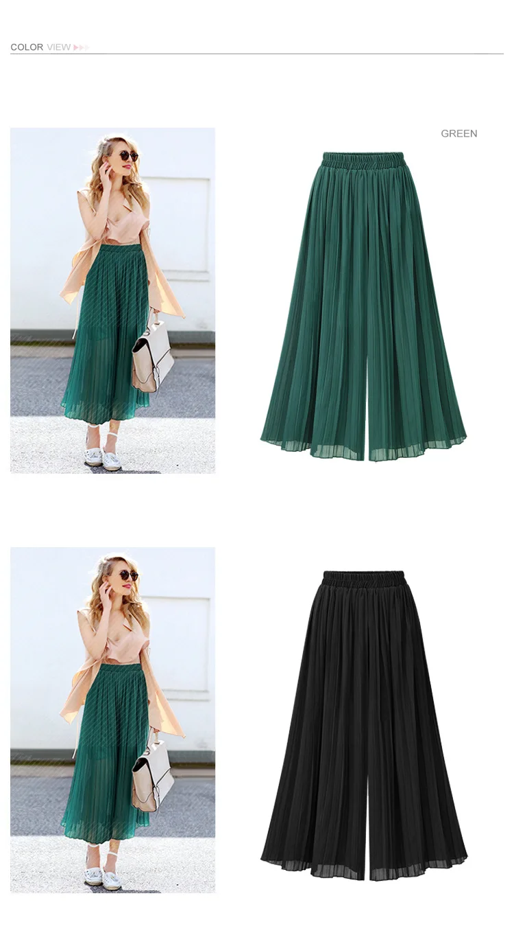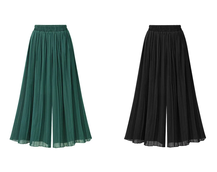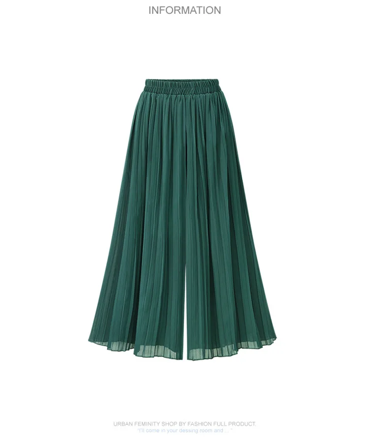 High Waist Loose Pleated Chiffon Wide-Leg Lightweight Breathable Flared Trousers